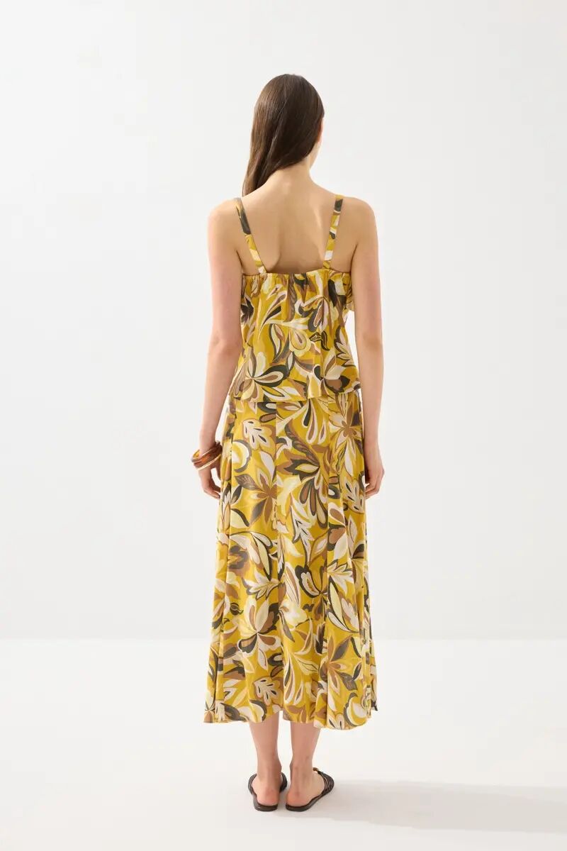 Desenli Askılı Bluz & Hasır Kemerli Uzun Keten Etek - Sarı