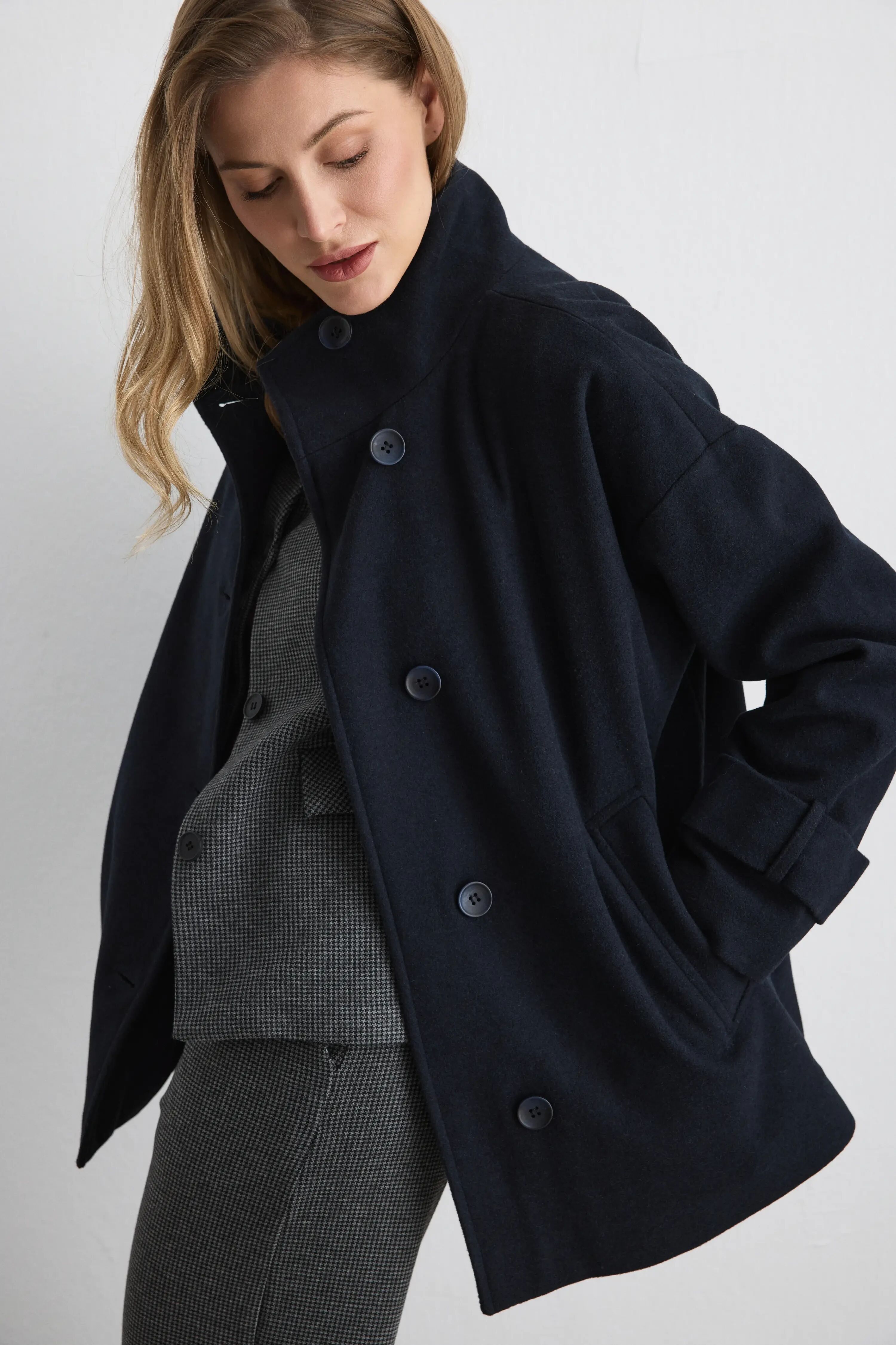 Dik Yakalı Yün Kaban & Kazayağı Pantolon Kombini