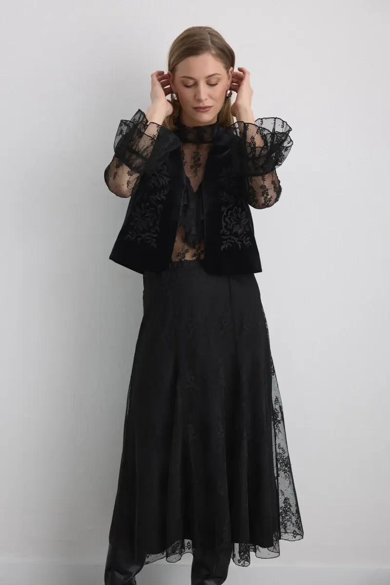 Anka Koleksiyonu Dantel Uzun Etek - Siyah