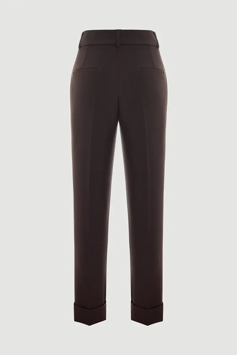 Yüksek bel kesimi silueti dengeliyor. Duble paça detayı modern bir görünüm sunuyor. Kahverengi tonu sıcak ve sofistike bir etki yaratıyor. Günlük ve ofis kombinlerinde rahatlıkla tercih edilebiliyor. Konforlu yapısı gün boyu kullanım sağlıyor. Zamansız bir stil alternatifi sunuyor.