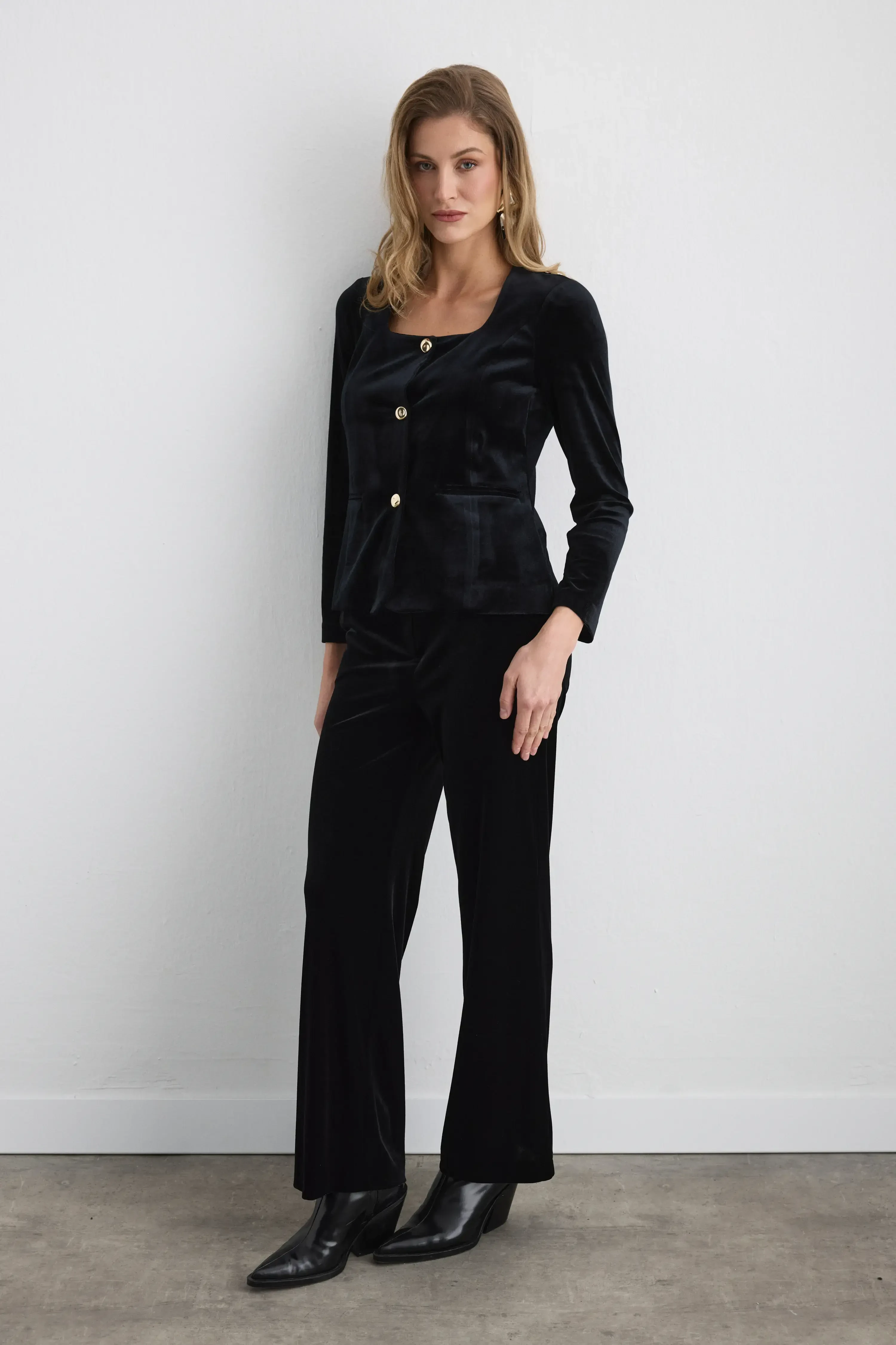 Klasik düğme detayı ve kadife dokusuyla sofistike bir görünüm sunuyor. Işığı yansıtan yüzeyiyle şıklığı ön plana çıkarıyor. Gündüzden geceye geçişte zahmetsiz bir stil ifadesi yaratıyor.