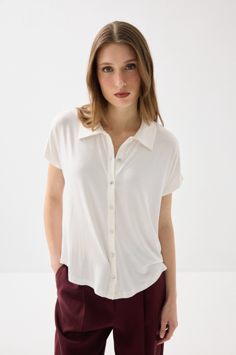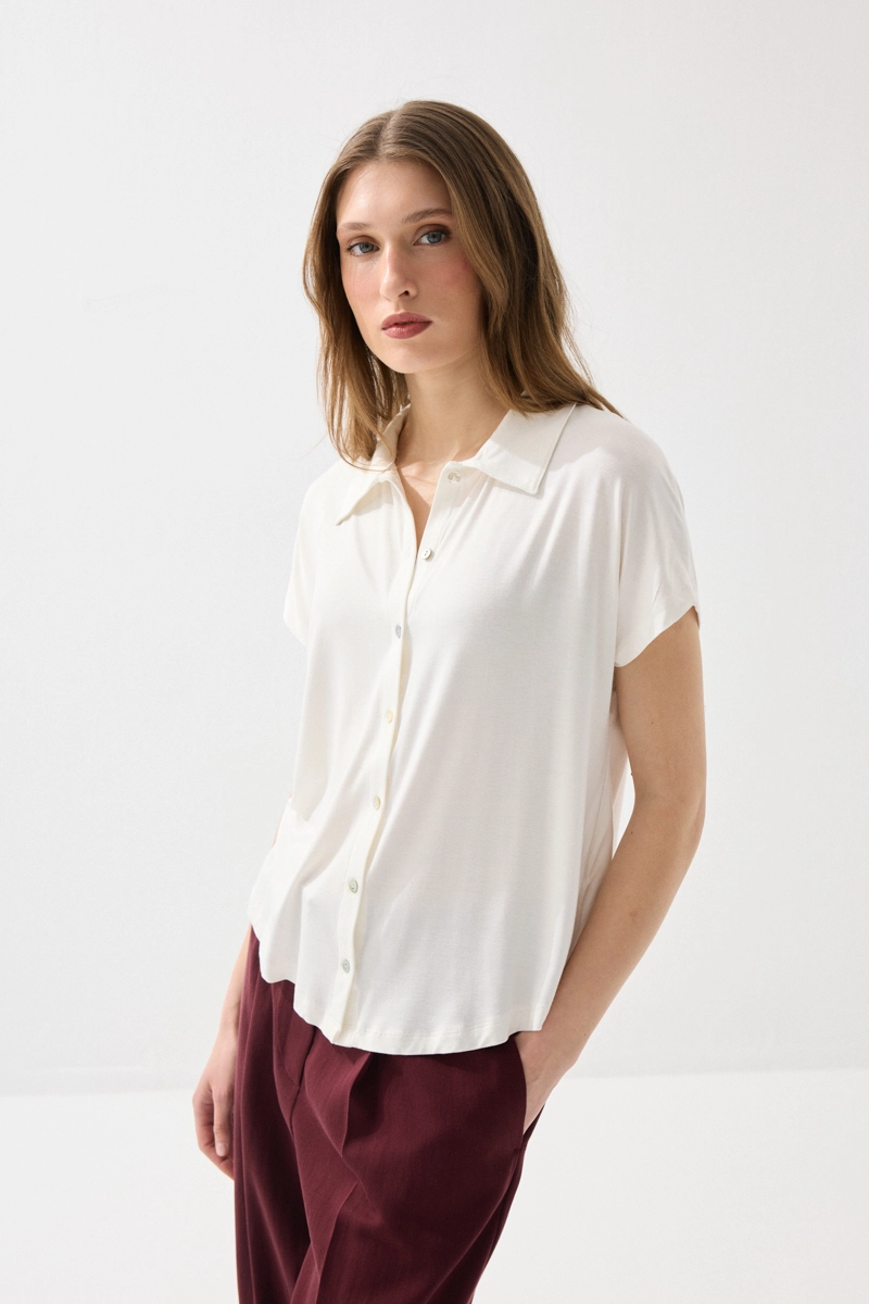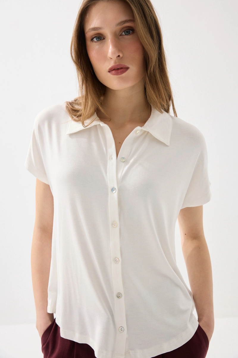 Bambu kumaşıyla yumuşak ve nefes alabilen bir kullanım sunan gömlek, düşük kol tasarımıyla modern bir görünüm sağlar. Hafif yapısı sayesinde gün boyu konfor sunar. Beyaz rengiyle her kombinle kolayca uyum sağlar. Günlük ve şık kombinlerde rahatlıkla tercih edilebilir. Zamansız bir gardırop parçasıdır.