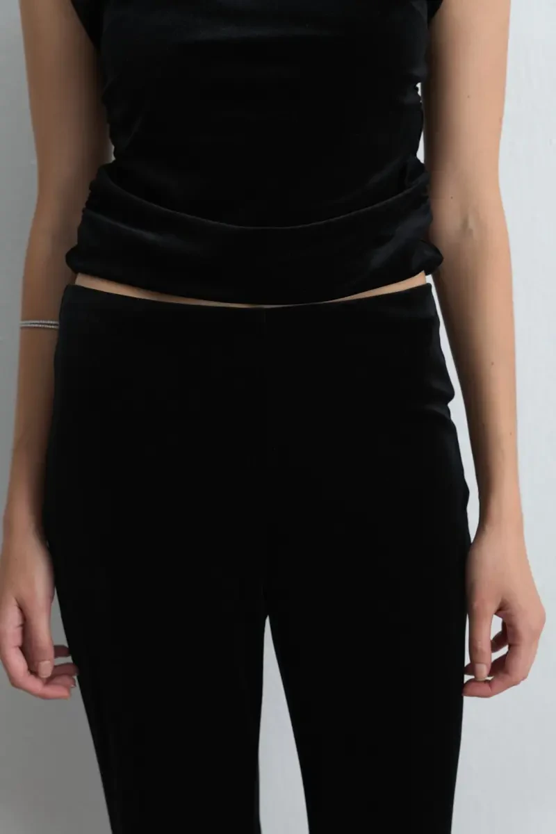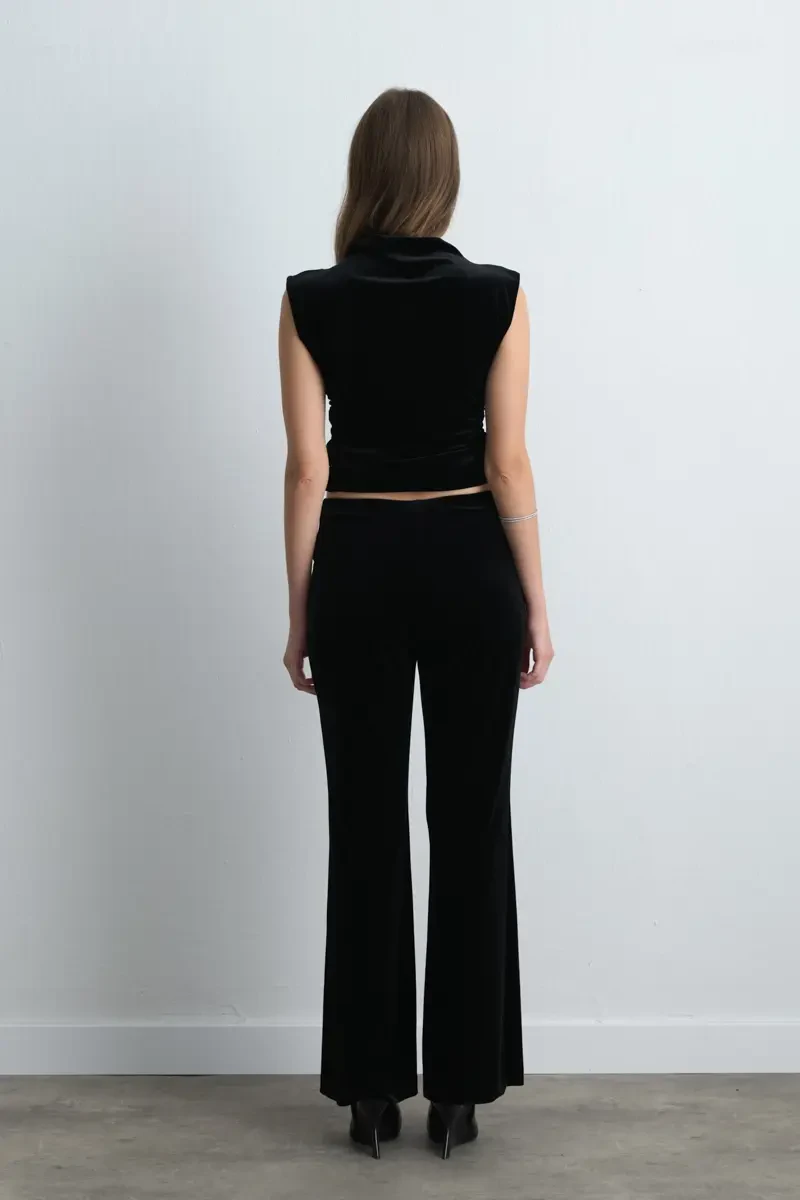 These pants, featuring an elastic waist for comfort, are ideal for daily stylish wear. Velvet texture ensures both elegance and comfort. The black color allows easy combinations and makes it a versatile wardrobe piece. Can be styled with sneakers or boots for different looks.