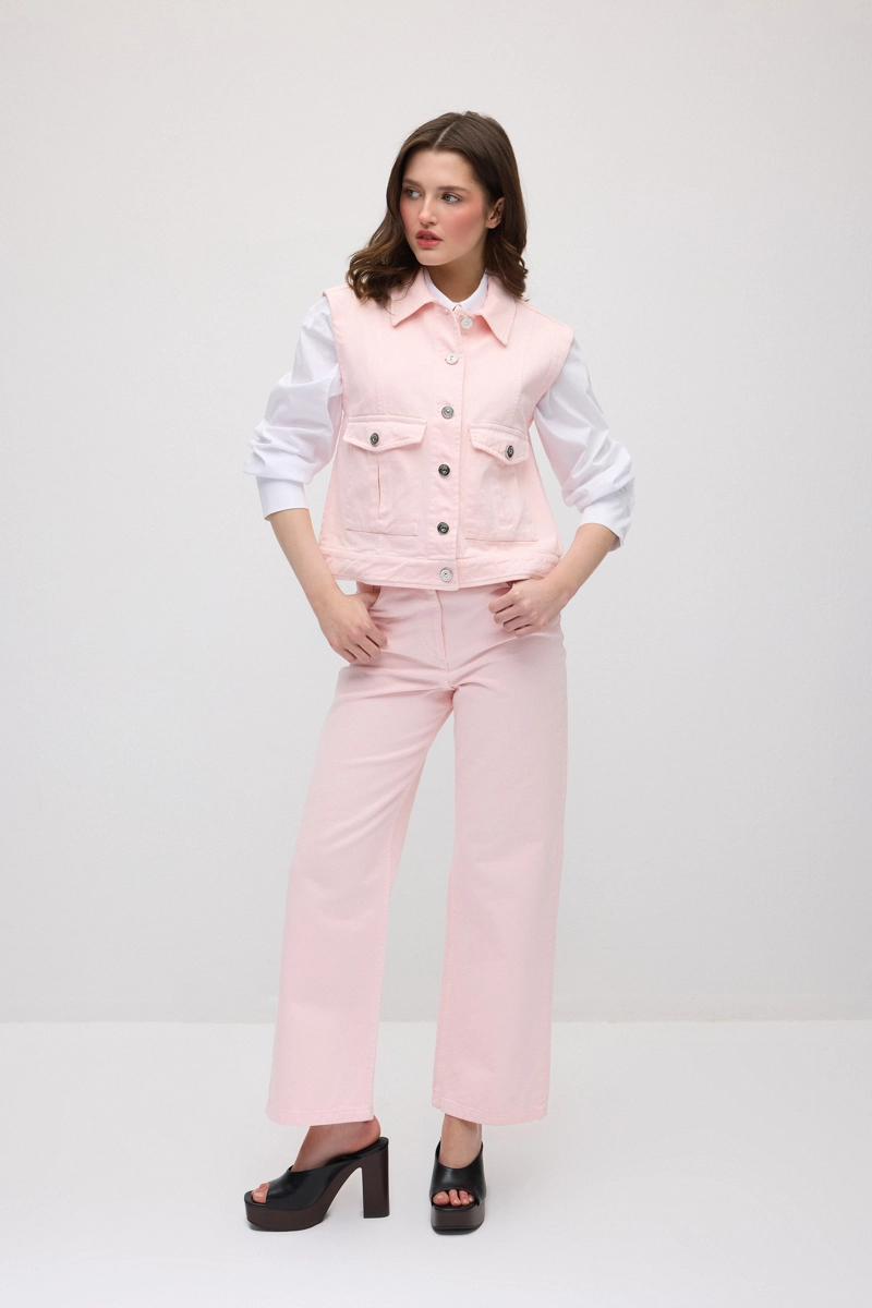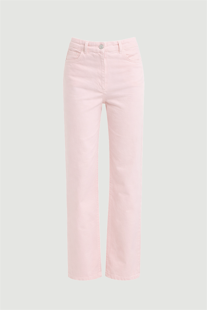 Combining classic denim style with a modern cut, this piece features a five-pocket design. The straight-leg silhouette offers an elegant and modern appearance. Comfortable denim fabric ensures all-day wear. Creates a stylish presence in daily outfits. Its soft tone adds a feminine touch to combinations.