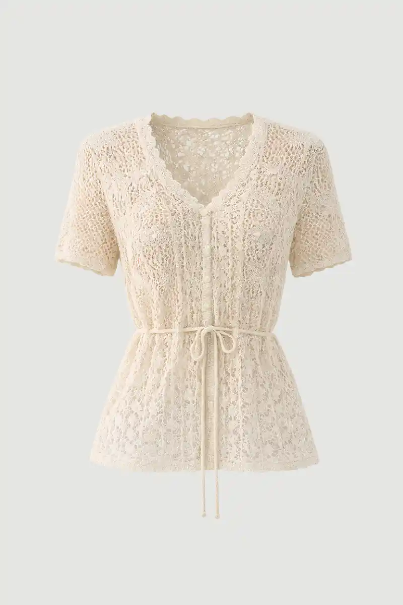 This short-sleeve linen knit jacket blouse, highlighted with openwork details, offers all-day comfort with its lightweight and breathable structure. Its natural texture provides a fresh feel during summer, while its elegant design adds a refined touch to your outfits. It is an ideal choice for both daily and special combinations. Thanks to its buttoned design, it can be worn open or closed to create different styles.