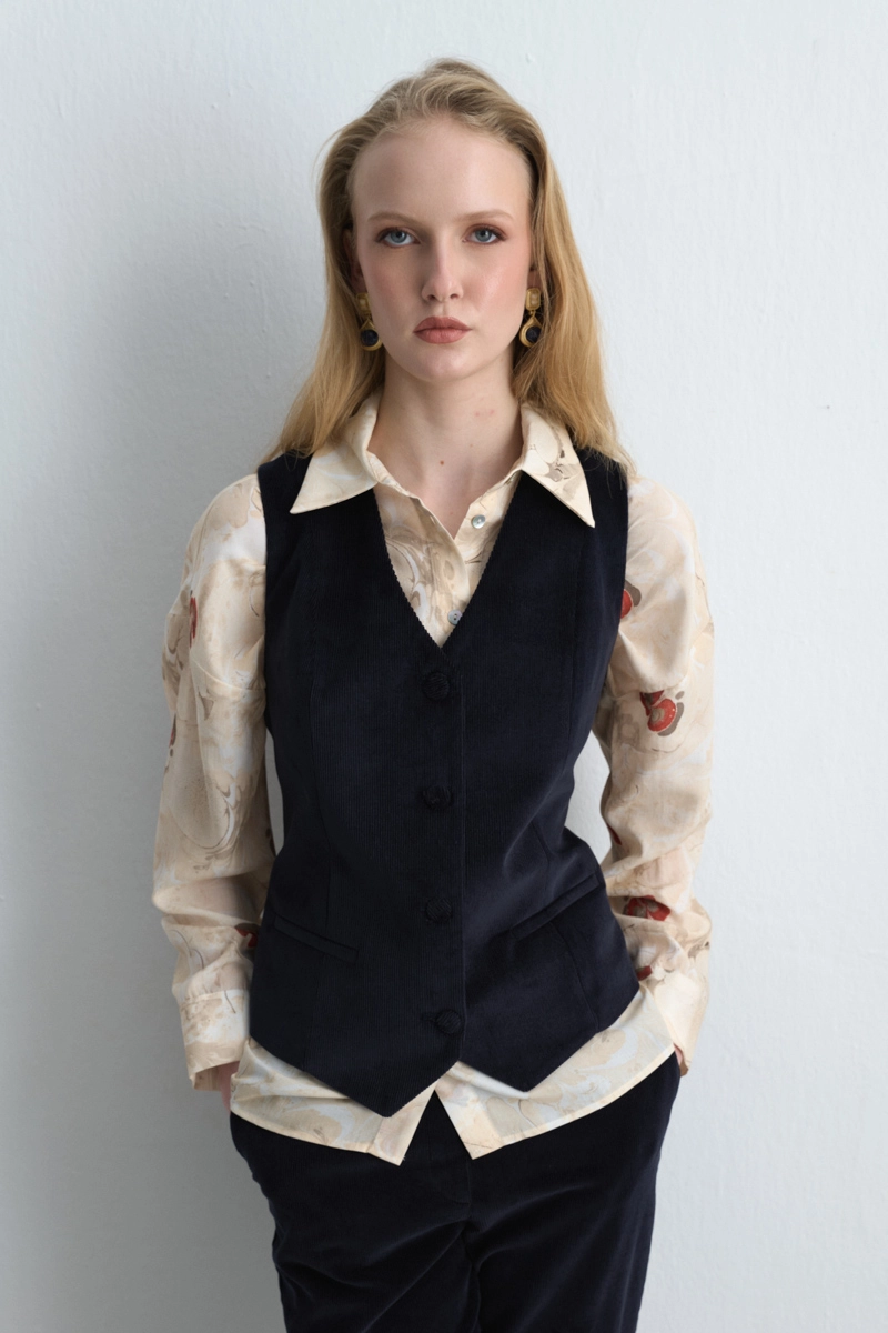 Anka Collection Ribbed Velvet Vest Navy Blue