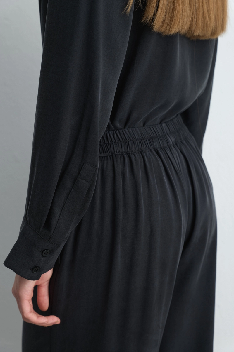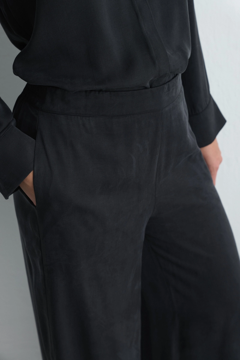 Its Loose Fit Provides A Comfortable Silhouette. The Black Tone Adds Sophisticated Balance To Outfits. Lyocell Fabric Offers Breathable Comfort. When Paired With Blazers, It Creates A Strong Appearance.