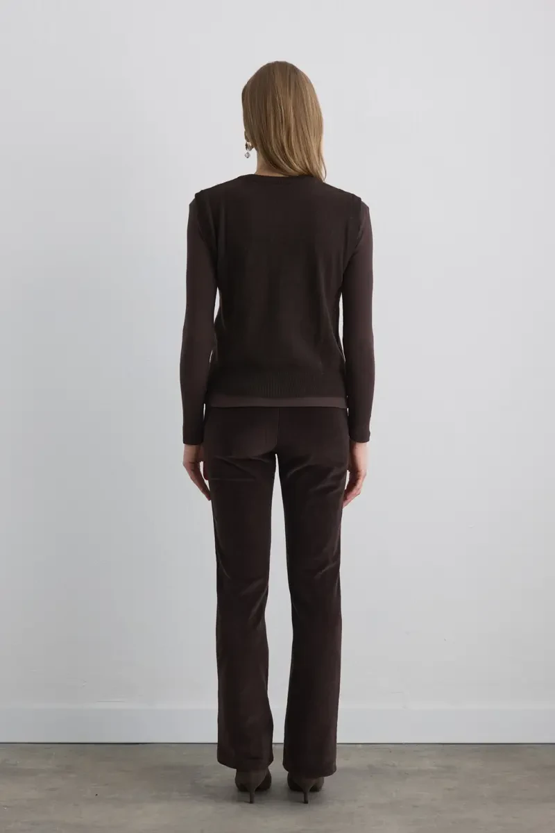 Combining the classic diamond pattern with a wool knit texture creates a nostalgic feel. The brown tone provides a warm and natural look. Easily paired with shirts and dresses.