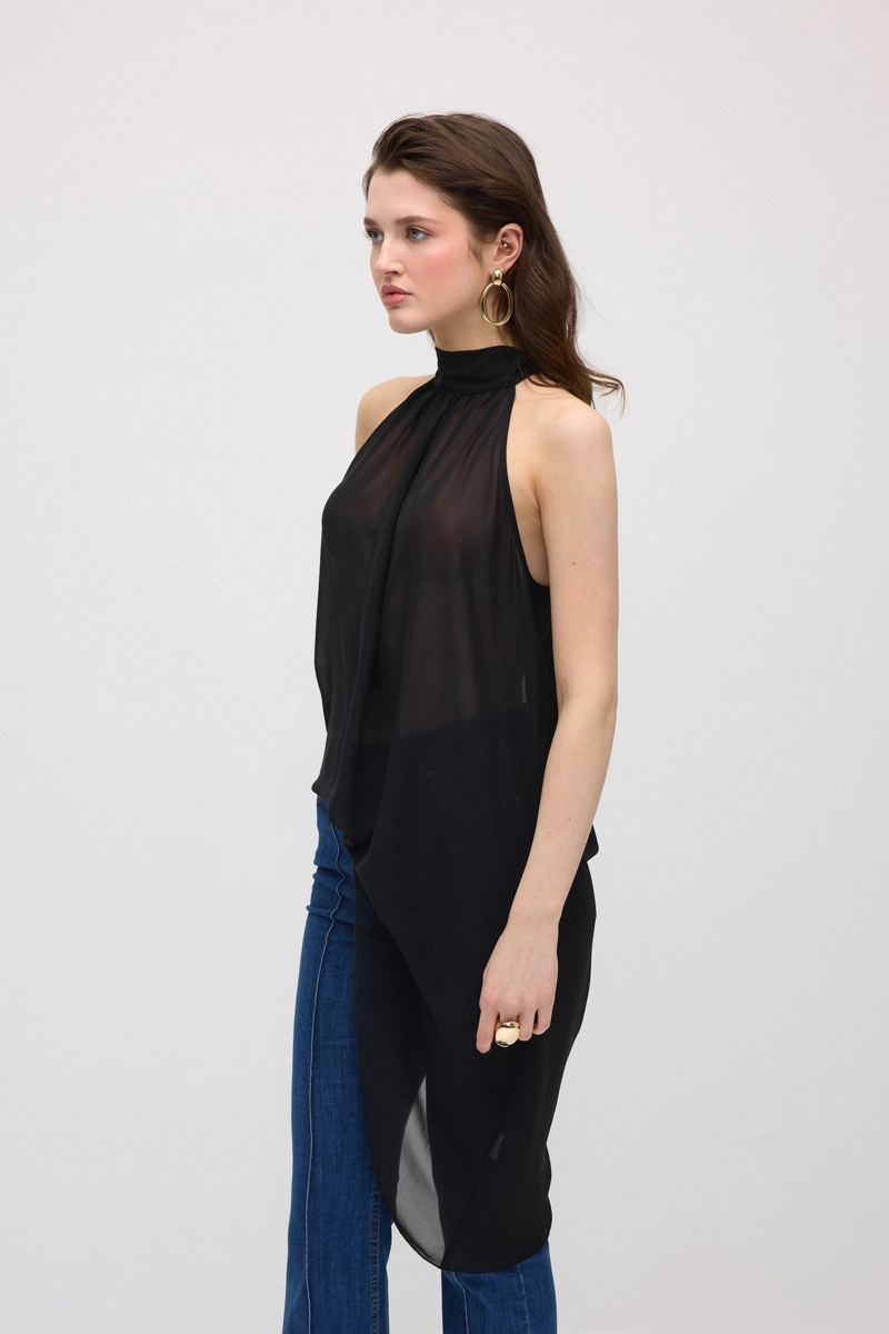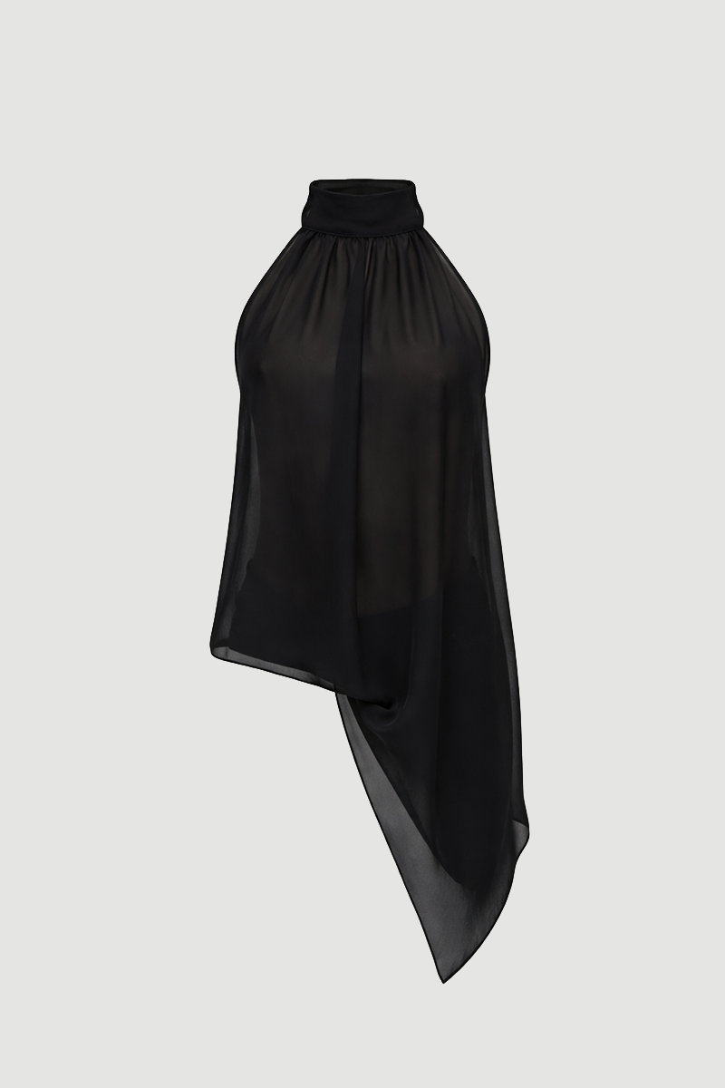 Featuring an asymmetrical cut, this design offers a modern and eye-catching look. The lightweight chiffon fabric provides an elegant and flowing appearance. Its all-day comfortable structure pairs easily with various combinations. Suitable for daily style and special occasions. Feminine details add a delicate touch to your outfit.