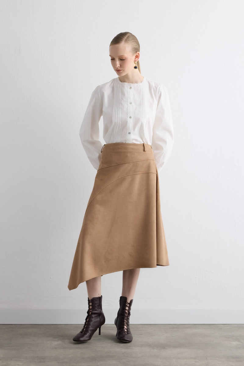 Asymmetrical Suede Skirt Beige
