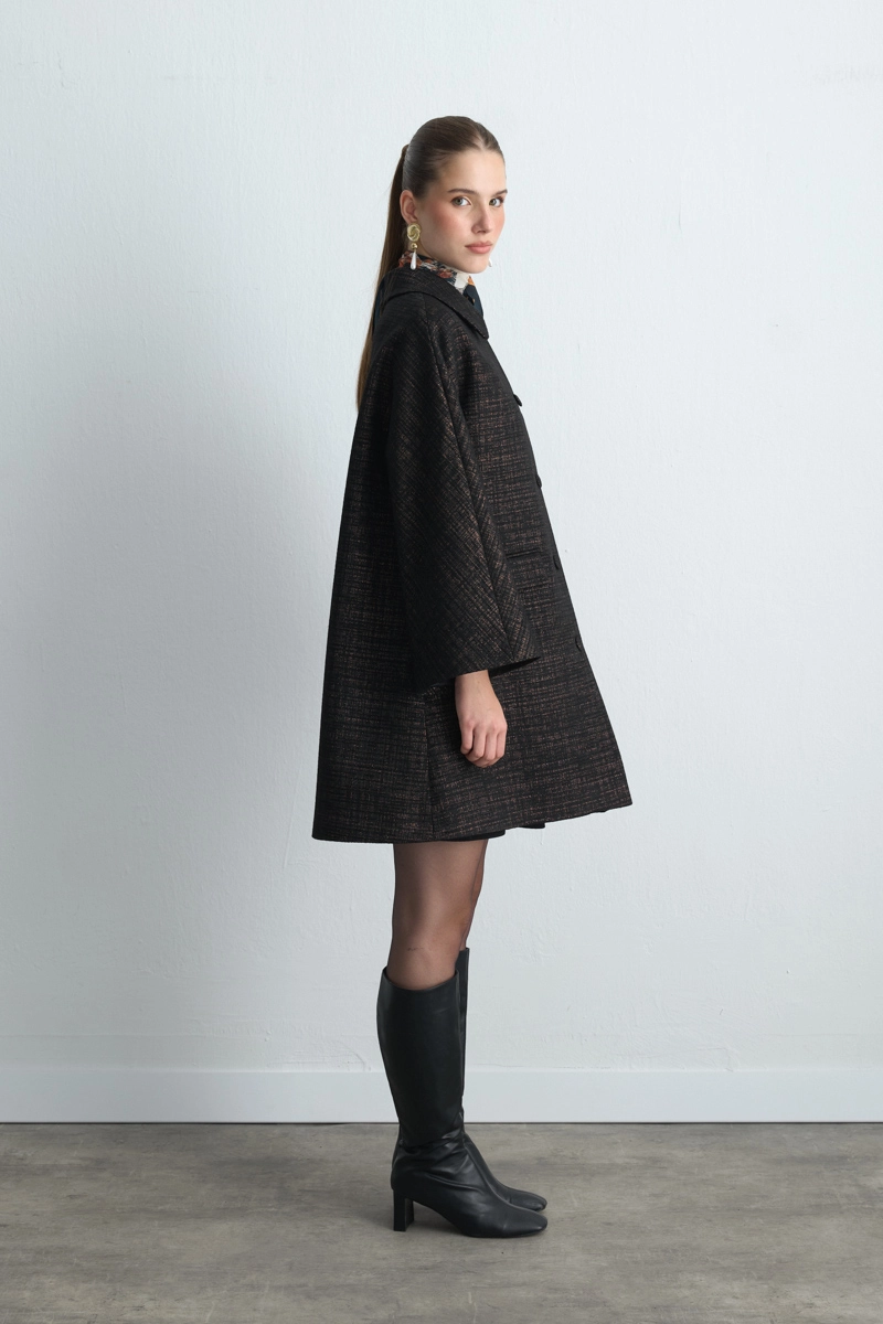 It Offers An Elegant Look With A Peter Pan Collar Detail. Its Jacquard Texture Adds A Classic And Chic Touch. The Black Tone Provides Versatile Styling Options. Suitable For Both Special Occasions And Everyday Elegance.
