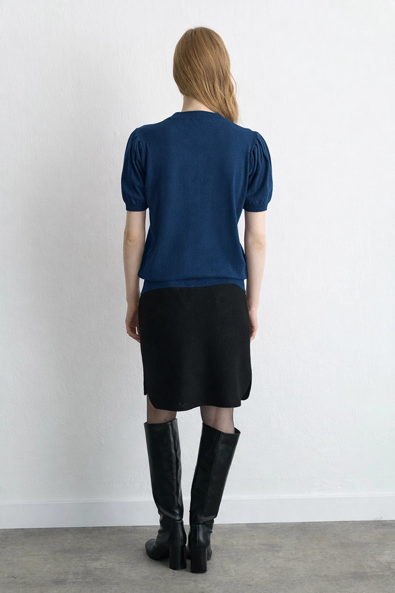 The balloon sleeve detail creates a feminine and chic look. The soft knit fabric ensures comfortable wear. The minimal color scheme makes it easy to pair with different outfits.