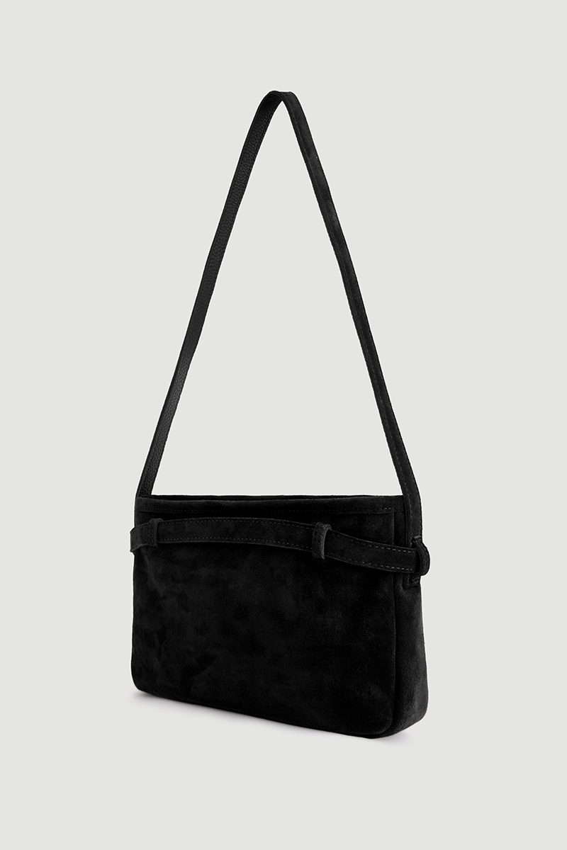 This bag, with its suede texture and belt detail, creates an elegant look and matches any outfit with its black color. Its medium size offers a functional alternative for daily use. Modern and timeless design completes your style. Suitable for both work and casual outfits.
