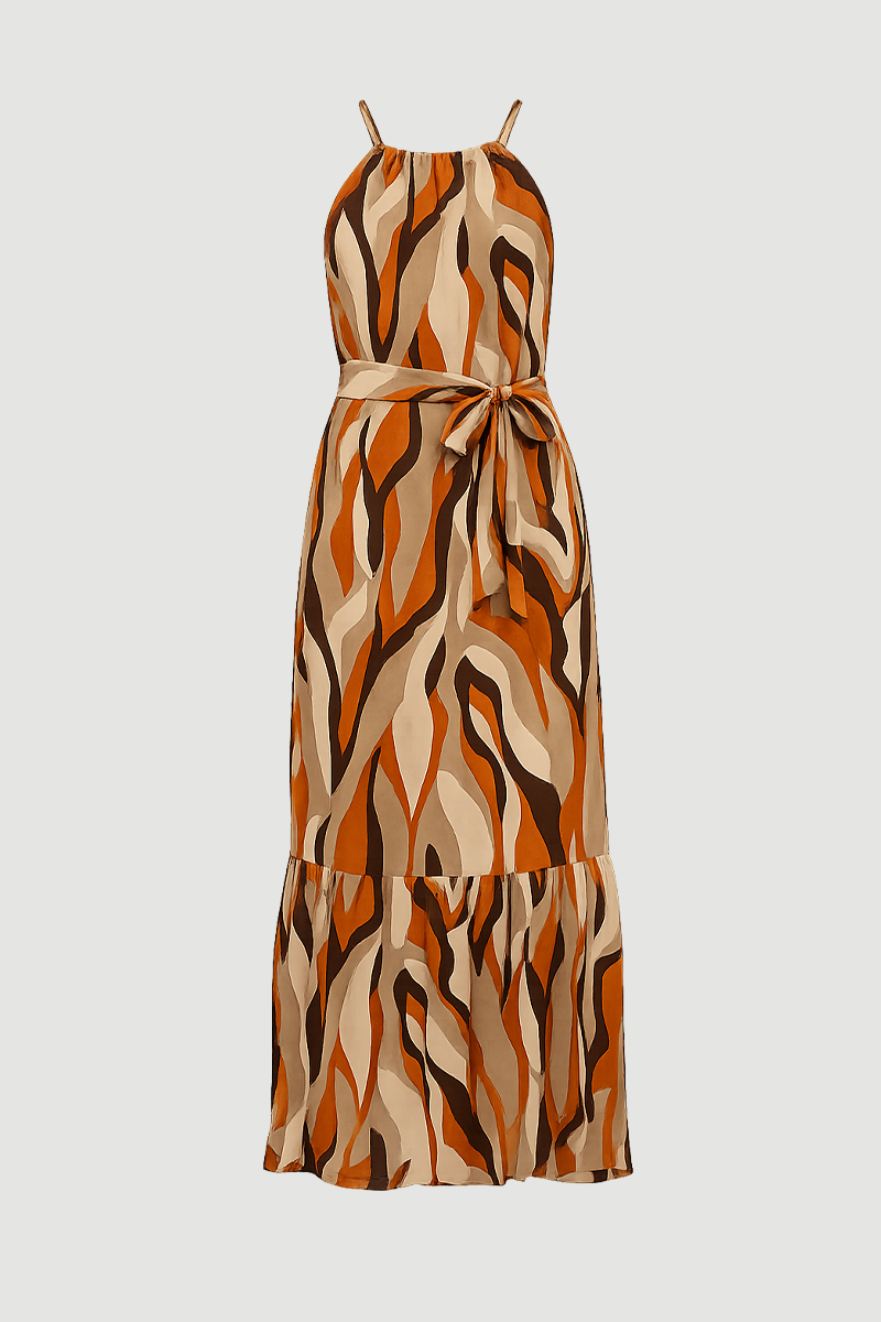 Waist belt detail and tie-neck design create an elegant and feminine look. Patterned fabric adds an energetic touch to outfits. Flowing material provides all-day comfort. Suitable for daily wear as well as special occasions. Dynamic form adds movement to your style.
