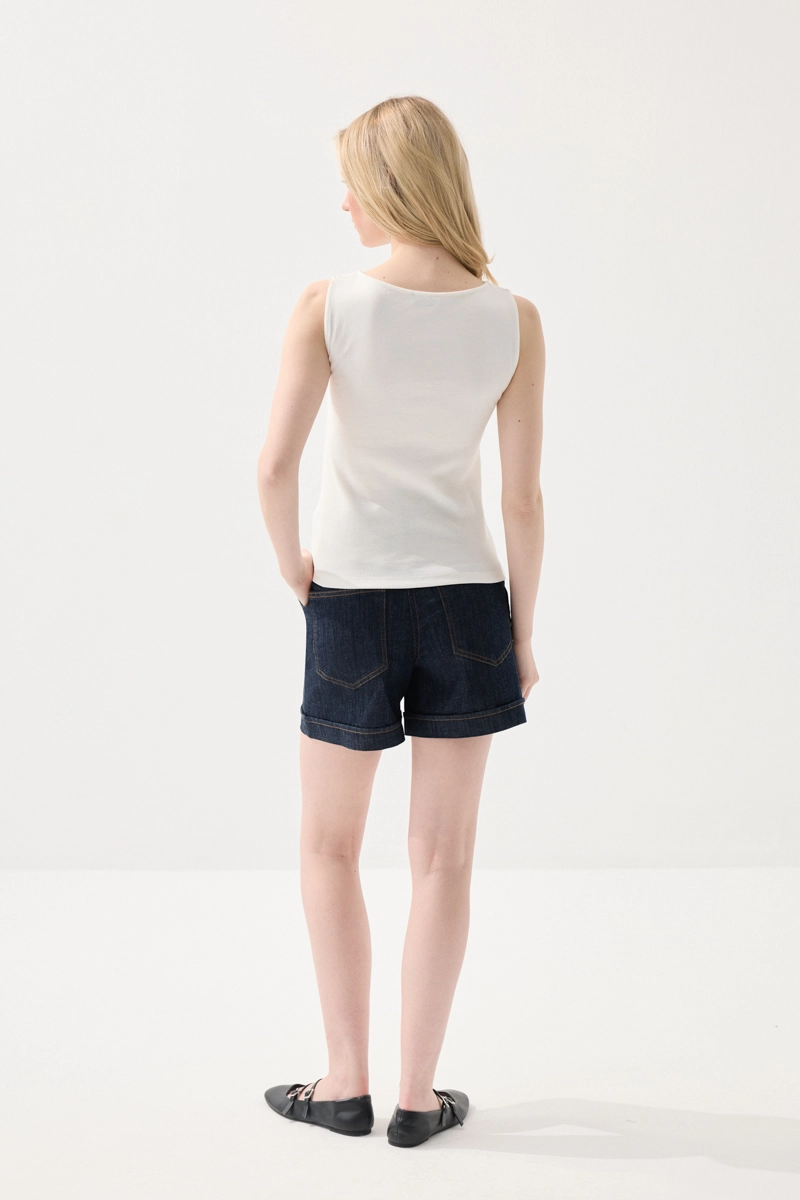 Its lightweight cotton fabric offers a fresh and comfortable wear. The boat neck design creates a simple and elegant style. The white color provides a timeless and clean look. It easily matches with different outfits.