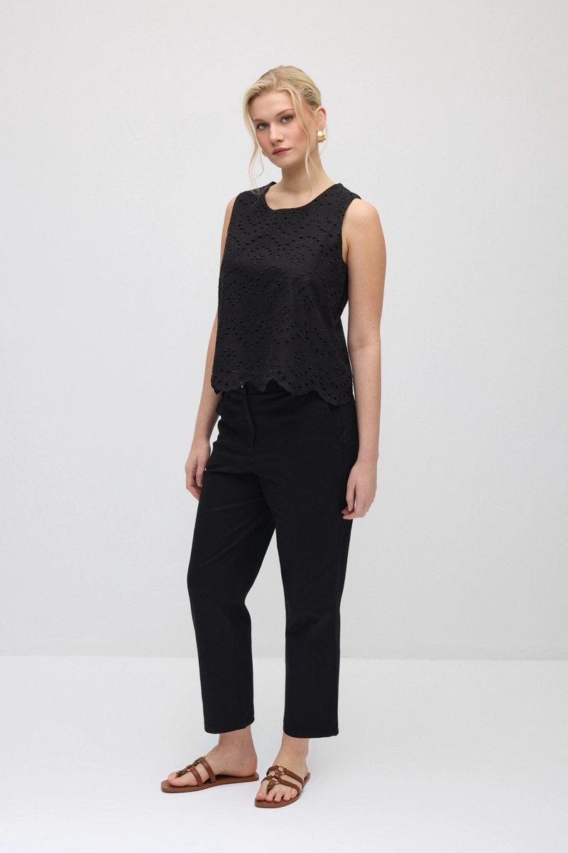 This design, accentuated with embroidery details, offers an elegant and modern appearance. Its cotton fabric is lightweight and breathable. The all-day comfortable structure adapts easily to different combinations. It is a timeless piece suitable for both daily and stylish outfits.