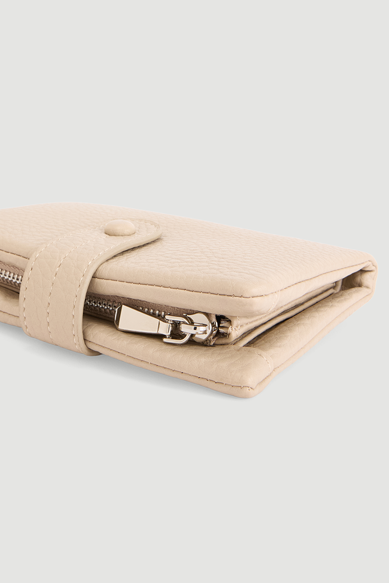 Beige color gives outfits a simple and elegant vibe. Button closure adds minimal elegance. Small size provides practicality for daily use. Creates a stylish and useful alternative.
