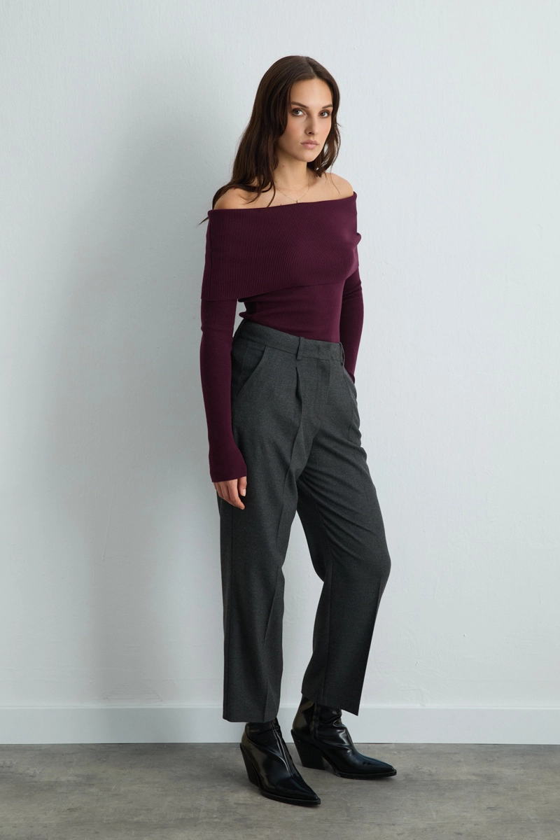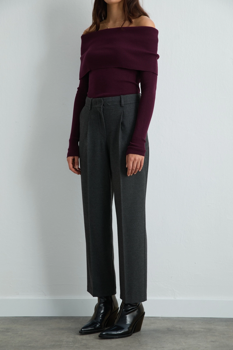 Gray carrot-cut pants with a belt detail provide both stylish and functional look. The high-waist design elegantly accentuates the waist and creates a modern silhouette. Suitable for daily to office outfits. Lightweight and stretchy fabric ensures comfortable wear.