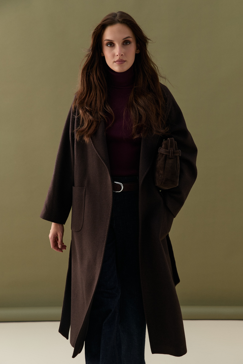 This classic wool coat, the epitome of timeless elegance, offers a sophisticated look in a warm shade of brown. The wool texture keeps you warm in cold weather, while its modern cut fits perfectly into both everyday and special ensembles. A true investment piece that will retain its value in your wardrobe for years.