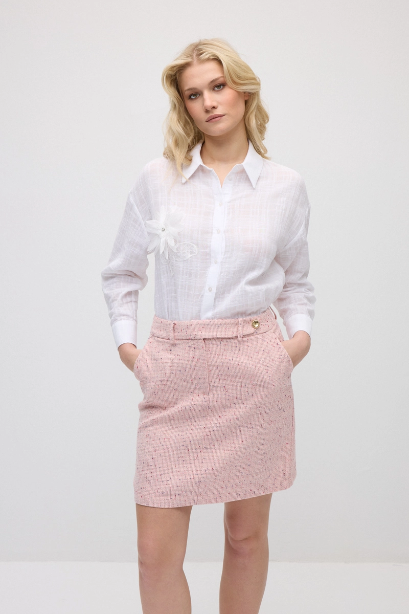 Tweed texture offers an elegant blend of classic and modern style. Mini length creates a dynamic and chic look. Suitable for daily wear as well as special occasions. Its modern form pairs easily with different tops. The soft tone adds a feminine touch to outfits.