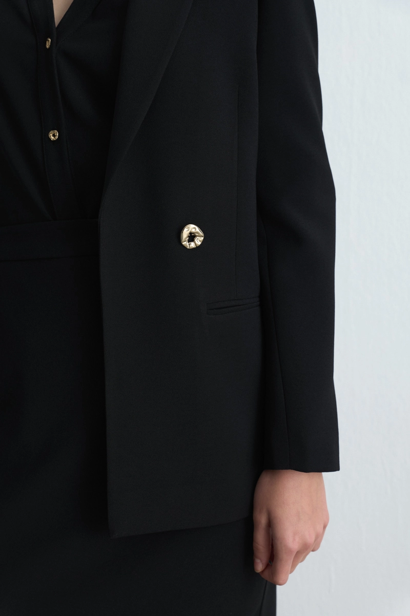 The Black Tone Offers Timeless Elegance. Crepe Fabric Provides A Flowing And Elegant Look. Blazer Form Adds A Strong Presence. Suitable For Both Office Outfits And Special Occasions.