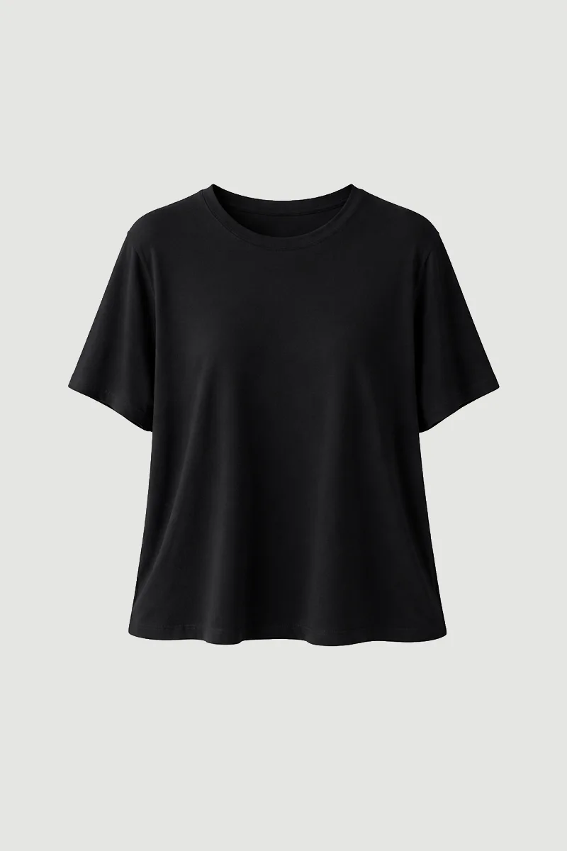 This bamboo t-shirt offers comfortable wear with its crew neck detail and relaxed fit, while its soft texture ensures all-day comfort. Its breathable structure provides a fresh feel. With its modern and simple design, it is an ideal choice for daily outfits. Its lightweight structure makes it suitable for all seasons. It can be easily paired with different pieces.