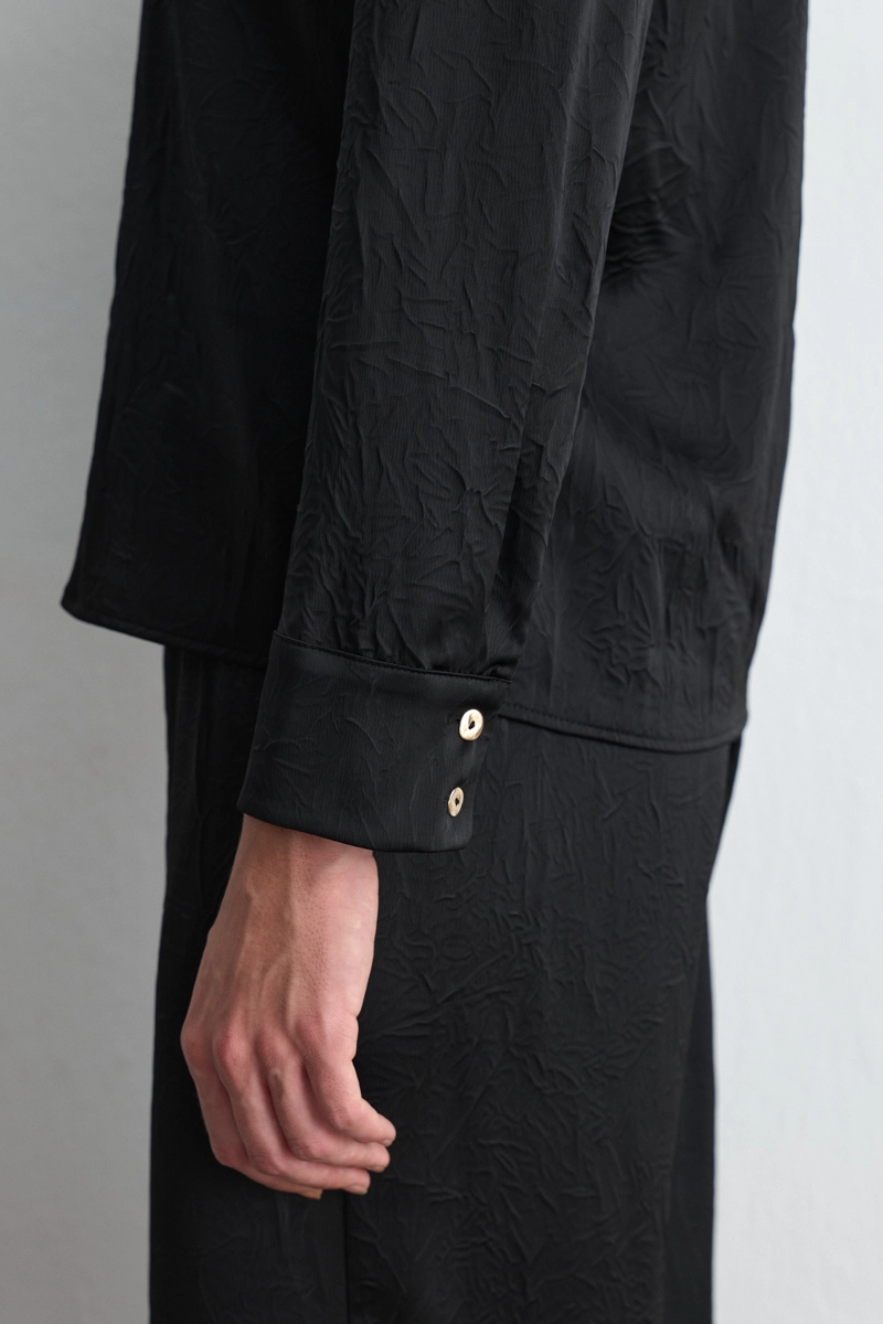 The black tone is a classic base that suits any style. Crinkle satin fabric provides shine and luxurious feel. Minimal cut ensures modern and comfortable wear. Completes elegance in daily or special occasion outfits. Highlights your style with refined details.