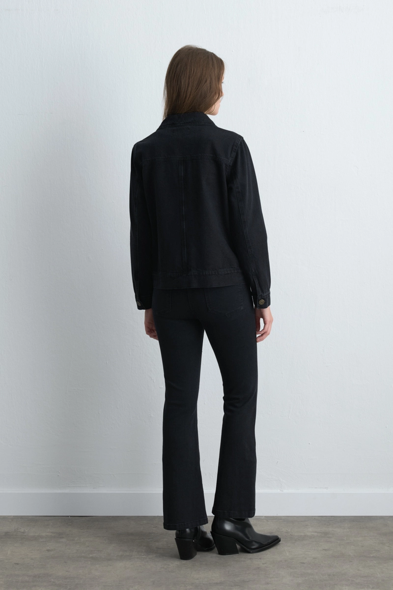 This piece, showcasing a modern and urban stance, is one of the most versatile options in your wardrobe. Its black tone offers both classic and bold looks while easily matching different combinations. The relaxed fit provides comfort all day long. Ideal as a complement for layered styles.