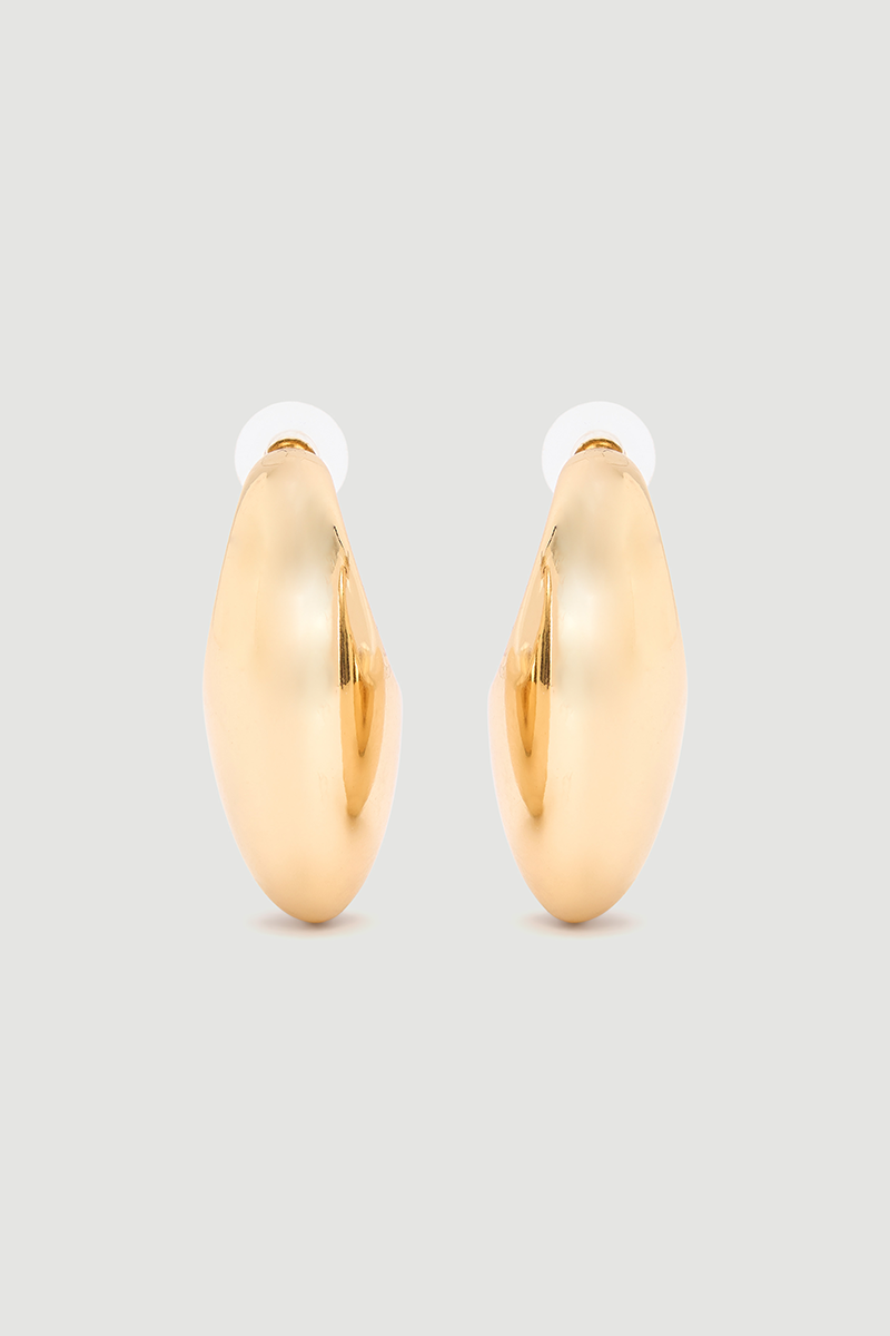 The Domed Earrings - Gold, designed in a shiny gold tone, stand out with their chic and modern lines. Suitable for any style from daily outfits to special events, these earrings offer an elegant and sophisticated look.