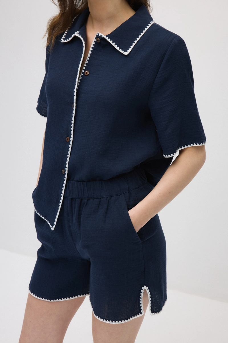 Made from lightweight muslin cotton, this piece offers all-day comfort. Embroidery details add a delicate touch. The elastic waist ensures a relaxed and practical fit. Creates a fresh and stylish look for summer outfits.