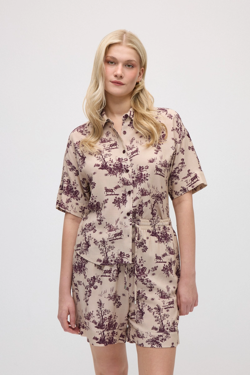 Thanks to its elastic waist, this piece provides all-day comfort, while its lightweight viscose fabric ensures a breezy feel. The patterned design adds movement to outfits. The relaxed fit makes it an ideal choice for daily style. Offers a comfortable and stylish look during summer and pairs easily with different tops.