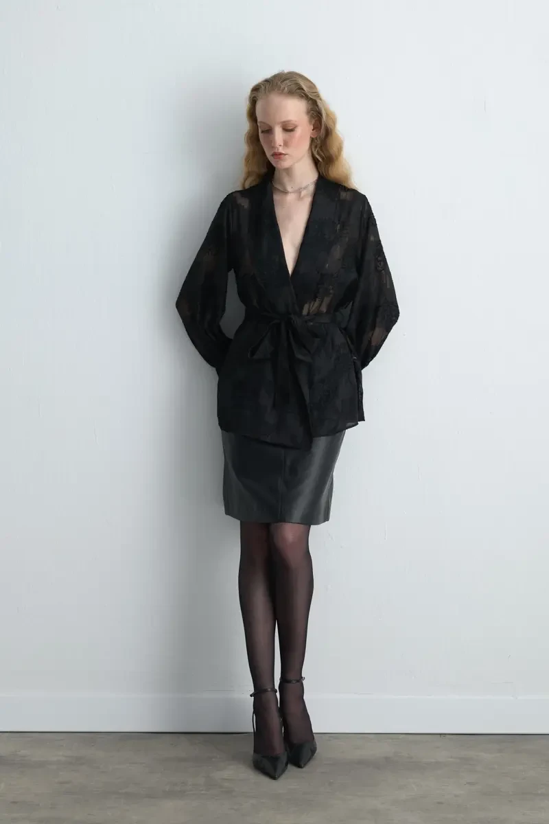 Its Light Chiffon Texture Provides An Elegant Appearance. Embroidery Details Add A Feminine And Sophisticated Touch. The Black Tone Offers Timeless Elegance For Outfits. Suitable For Both Daily Looks And Special Occasions.