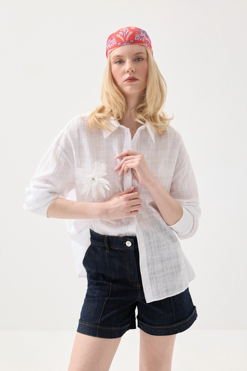 Floral appliqués add a romantic and elegant touch. Cotton fabric provides lightweight and breathable wear. Its all-day comfort pairs easily with different outfits. Suitable for daily style and chic combinations. The simple and airy appearance adds elegance to your look.