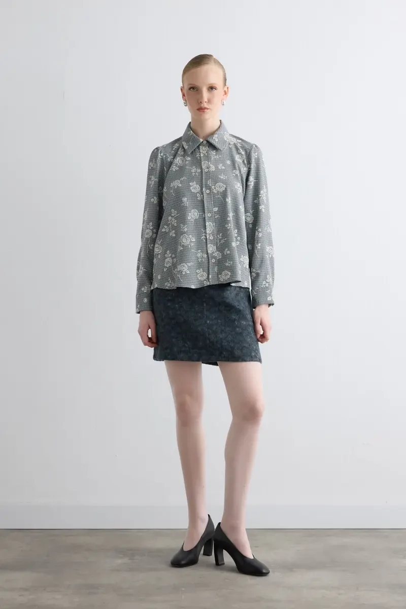 Floral and checkered patterns create a modern contrast. The navy tone adds sophistication. Relaxed fit ensures comfort for daily wear. Easily matches layered outfits.