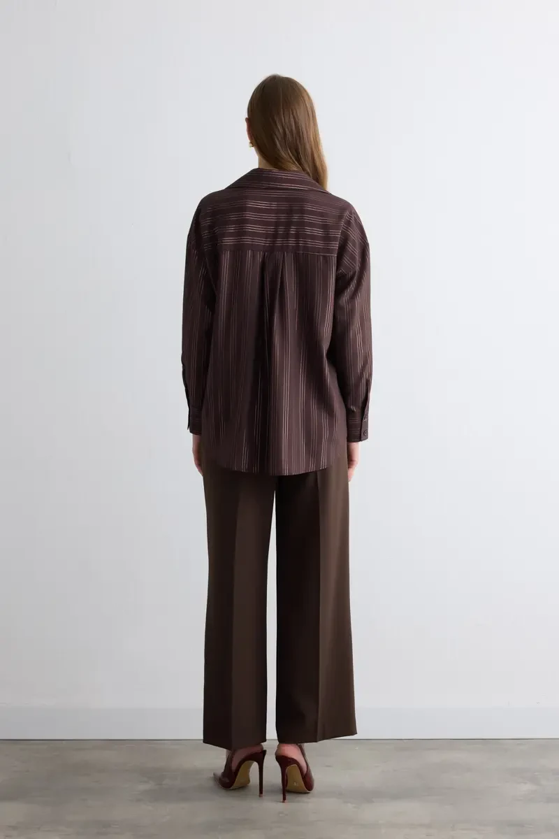 The sparkling stripes create a modern look. The relaxed fit ensures all-day comfort. The brown tone provides natural elegance. Adds a unique touch to layered combinations. Suitable for both daily and evening styles.