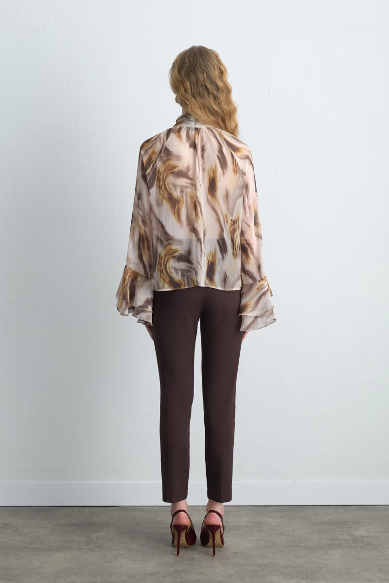 The Neck Tie Detail Provides A Feminine Silhouette. Its Lightweight Chiffon Fabric Adds An Elegant Touch. The Beige Tone Highlights Patterns And Enhances Elegance. Creates A Perfect Match Especially With Skirts And Heels.