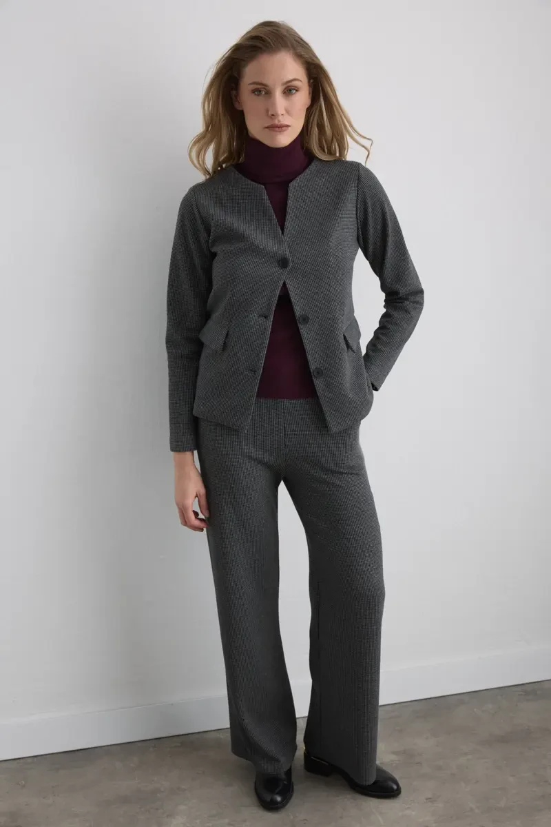 The V-neck and classic houndstooth pattern provide a sophisticated look. Its lightweight texture ensures comfort in layered outfits. Modern lines make it suitable for both everyday and work styles.