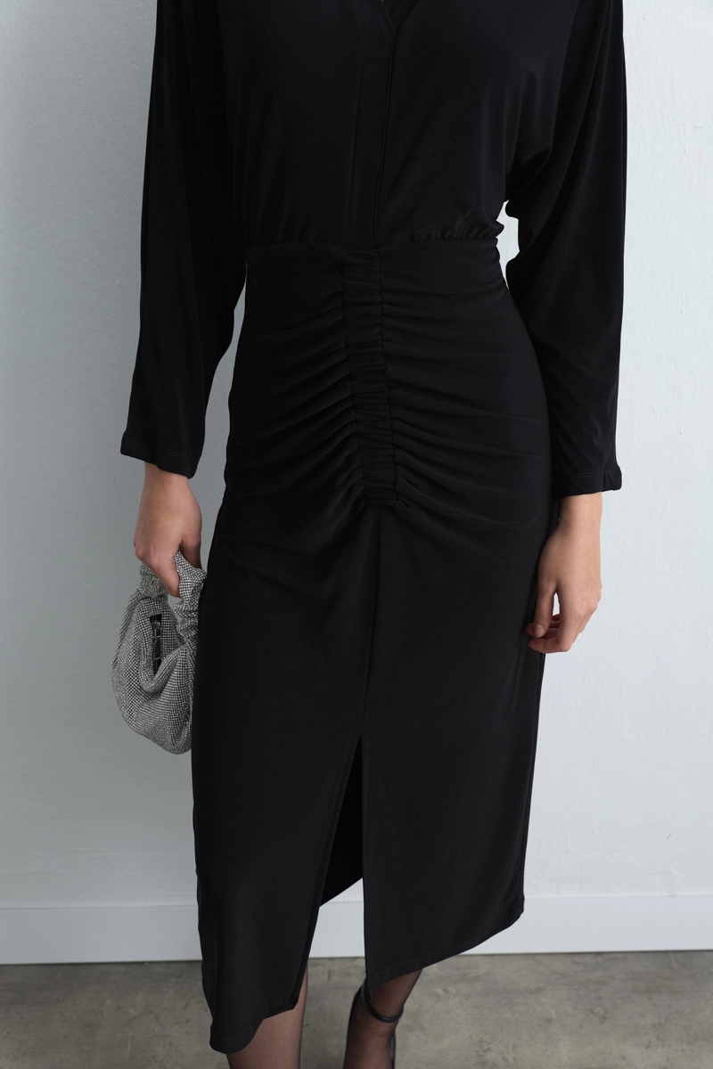 The Stretch Jersey Fabric Provides Comfortable Wear. The Midi Length Creates Timeless Elegance. The Black Tone Matches Easily With Various Accessories. A Practical Option That Transitions From Day To Night.