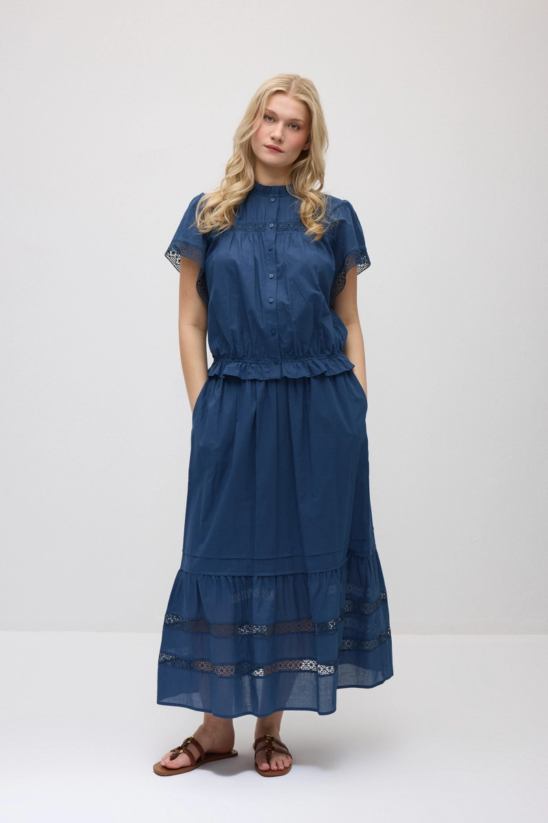 Lace details add an elegant and chic touch to the design. Cotton fabric ensures all-day comfort. The modern cut pairs easily with different combinations. Suitable for daily style and stylish outfits. Its timeless appearance makes it a complementary wardrobe piece.