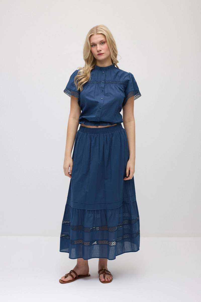 Enhanced with lace details, this design offers an elegant and feminine look. Cotton fabric provides lightweight and comfortable wear. The long form creates a flowing and stylish silhouette. Suitable for daily style as well as special occasions. Its timeless design makes it a standout wardrobe piece.