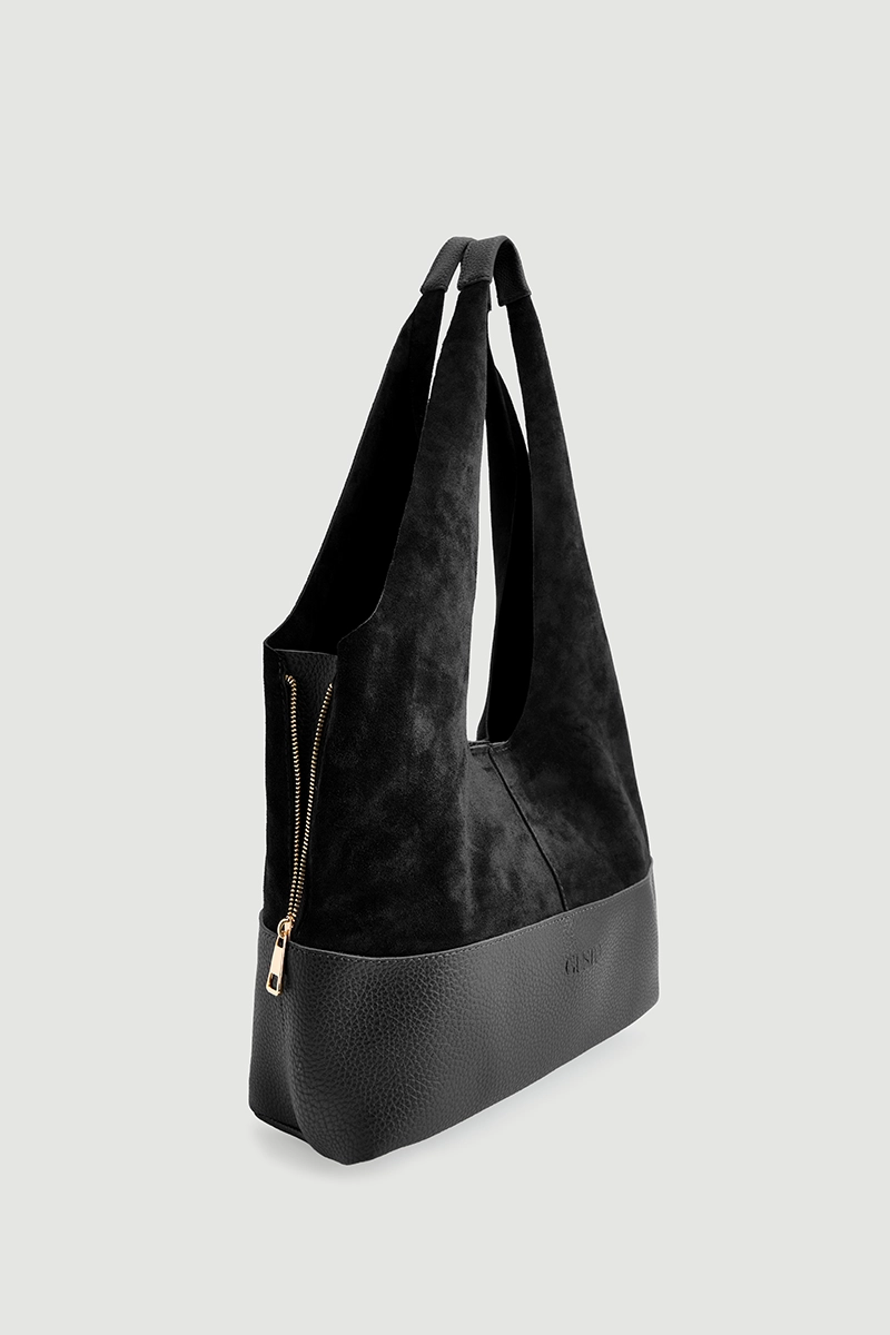 Its black color matches every style. The split suede texture adds a modern and chic look. The leather sole provides durability and long-lasting wear. It is a comfortable and practical option for daily use. With its minimal details, it becomes a refined accessory that completes outfits.