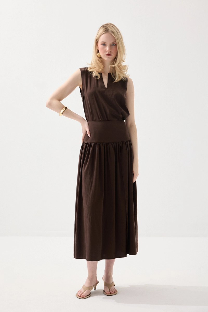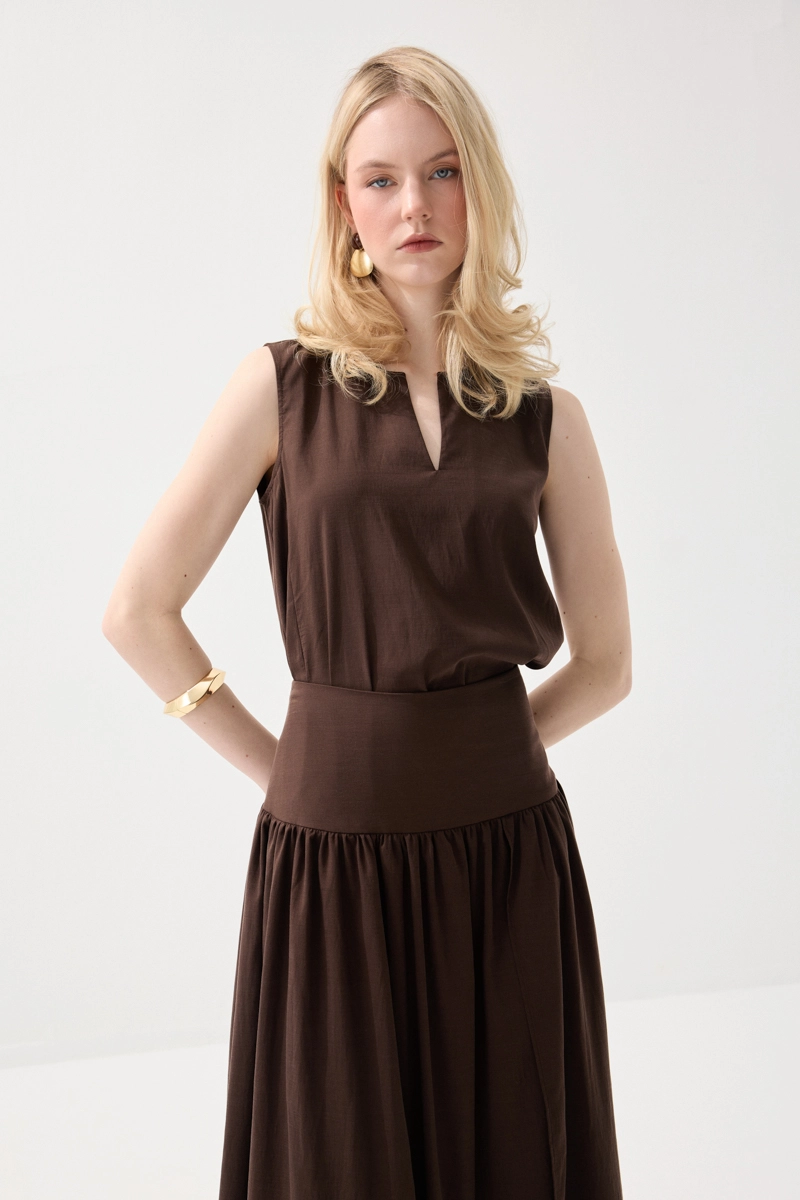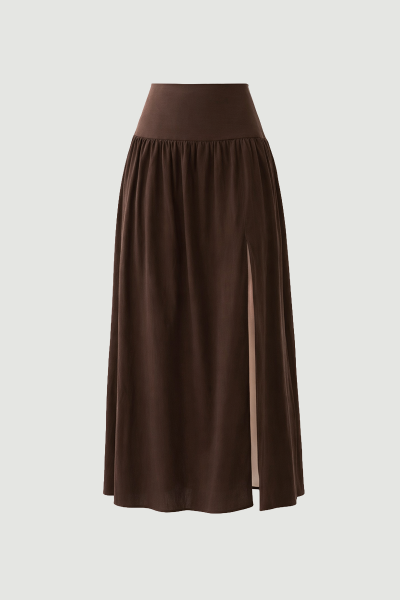 This long Tencel skirt, enhanced with a slit detail, offers an elegant look with its fluid structure. Its lightweight and breathable fabric ensures all-day comfort. Its modern cut creates a feminine silhouette. It can be easily preferred for both casual and chic combinations. It adds a graceful touch to your style.