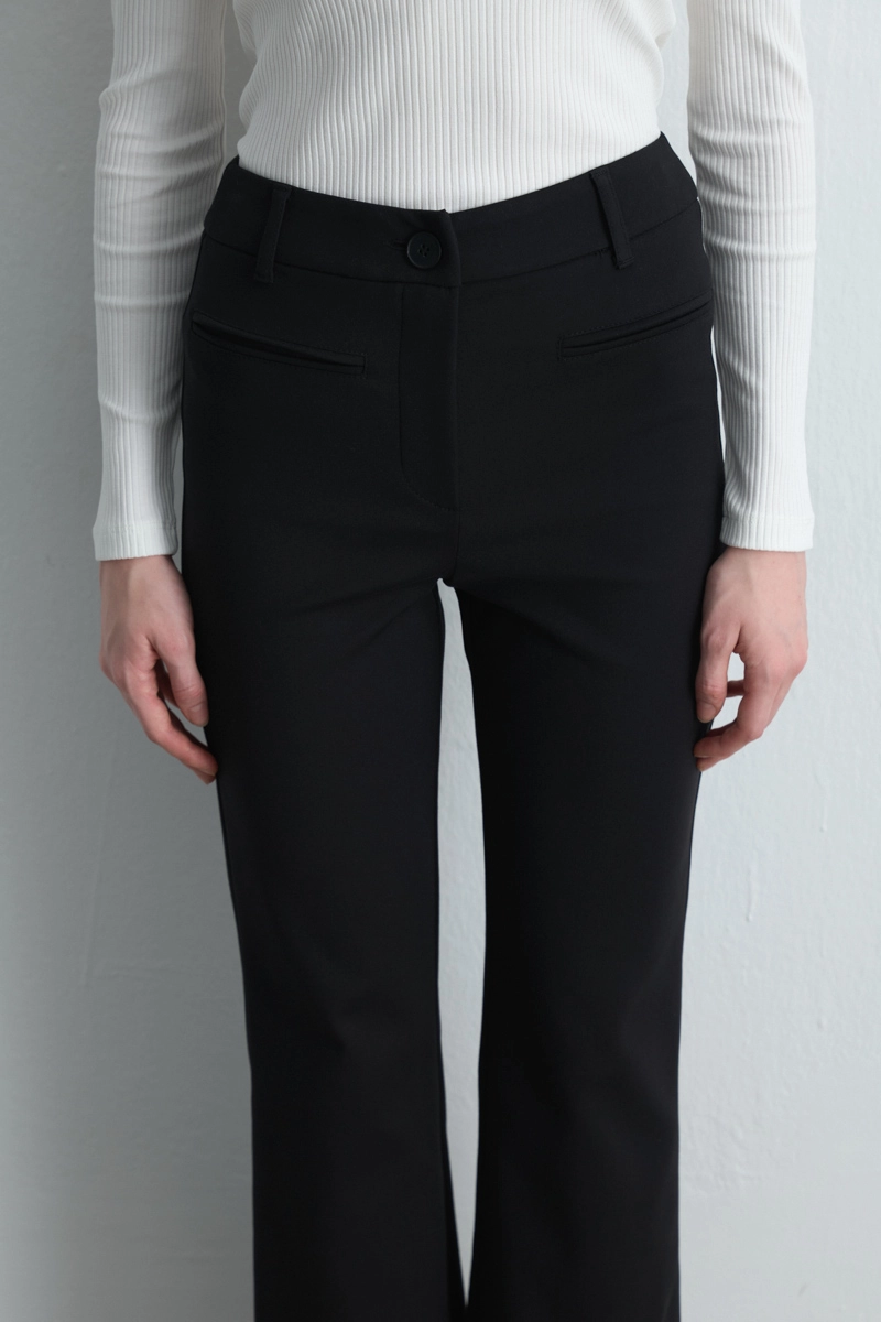 The Flare Cut Lengthens The Legs. Its Stretchy Structure Ensures Comfortable And Stylish Wear. The Black Color Provides A Timeless Option. Suitable For Office Styles With Shirts Or Evening Outfits With Blouses.