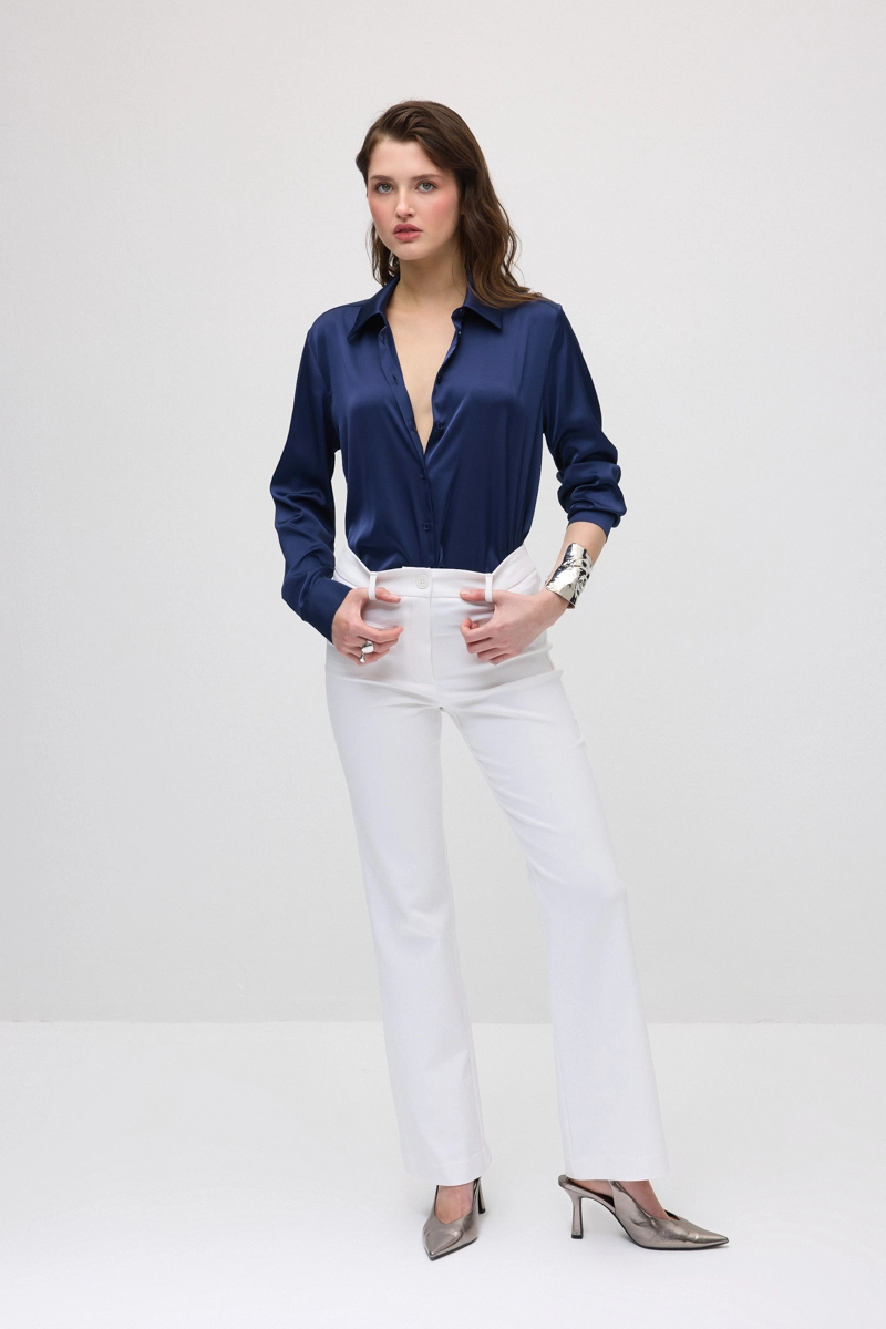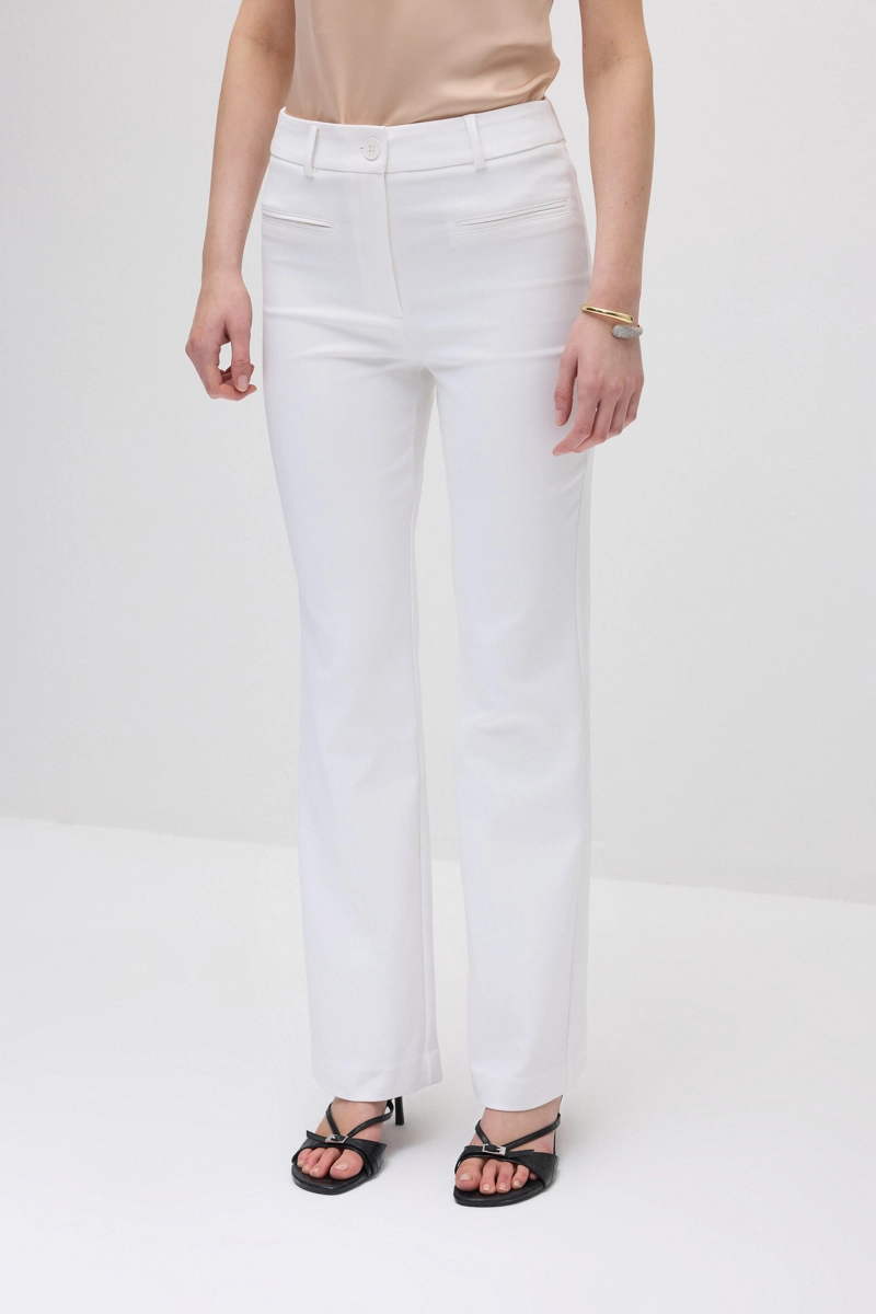 Thanks to its flexible structure, this design provides all-day comfort and creates an elegant silhouette with its wide-legged form extending below the knee. The modern cut gives a stylish look. Pairs easily with different tops. A timeless piece suitable for daily style as well as chic outfits. The airy tone adds a modern touch to combinations.