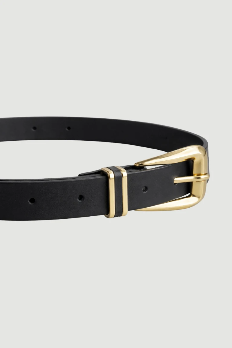 Black faux leather belt with metal bridge detail provides a modern look and is a staple of timeless style. Durable structure and simple design allow it to pair with both classic and casual outfits. Suitable for daily use and office styles.