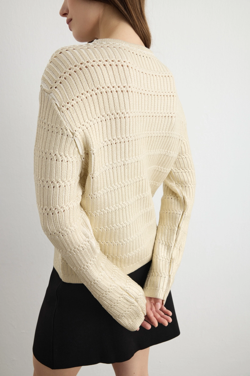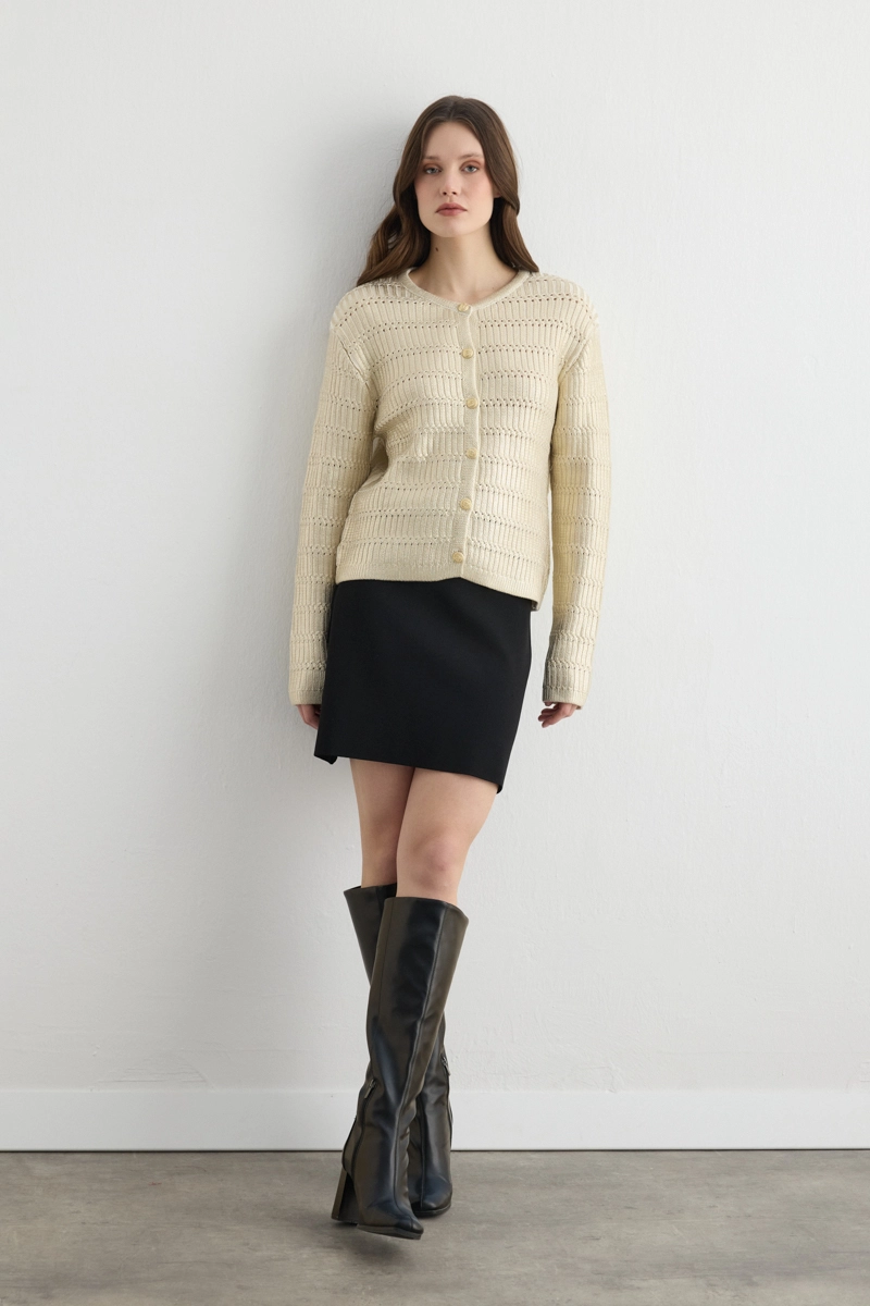 Shiny details create a sophisticated aura and stand out in outfits. Metallic tones complement modern urban styles. Knit texture combines comfort with elegance. Makes a difference in daily or office outfits. When paired with simple pieces, it creates an elegant contrast. Its shimmer highlights your style.