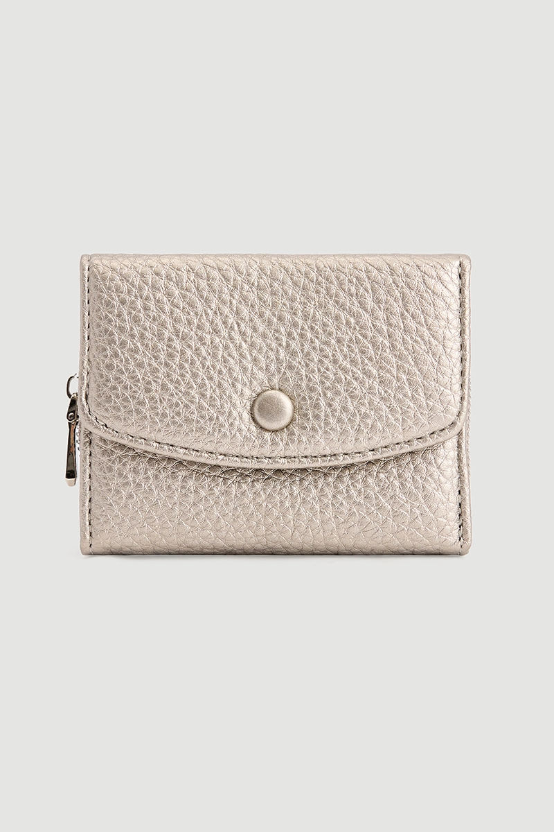 This mini wallet, in a gray tone with a zipper detail, offers simple elegance and practical use with its compact size. Card and cash compartments keep things organized, while the modern design adds a sophisticated touch to your style. An essential complement for daily outfits.