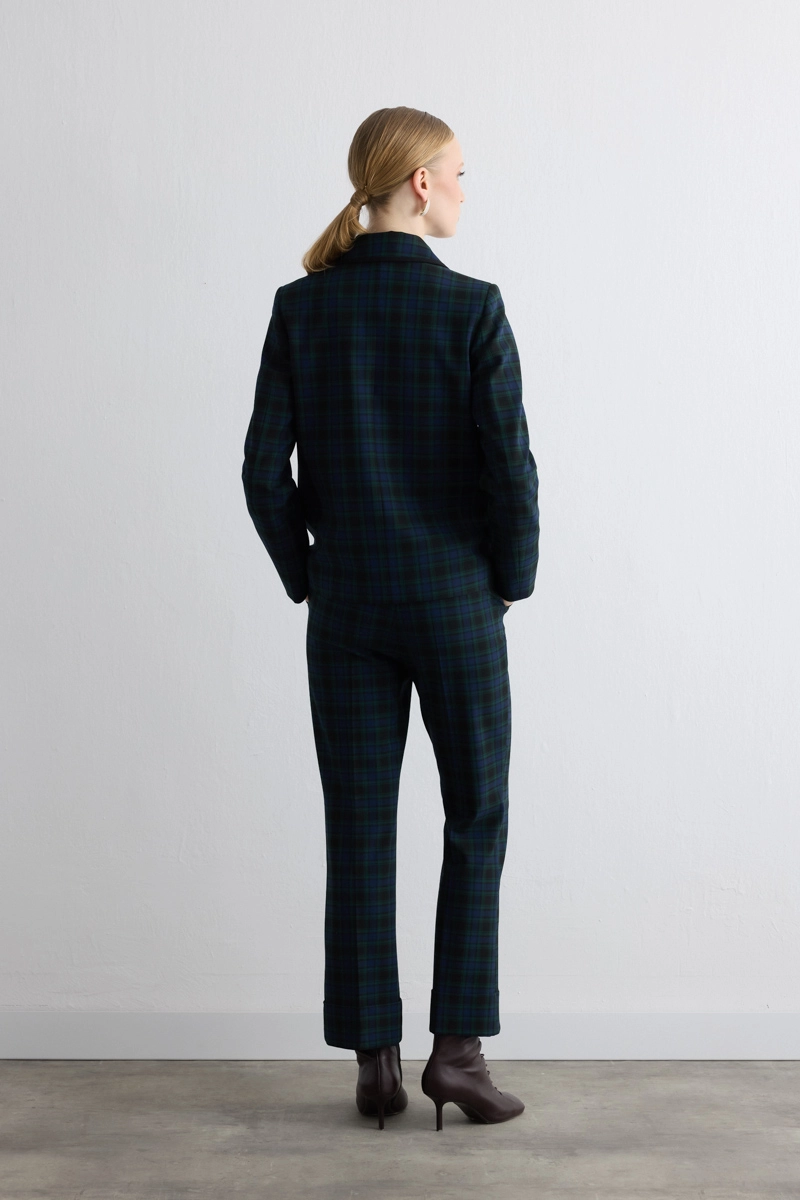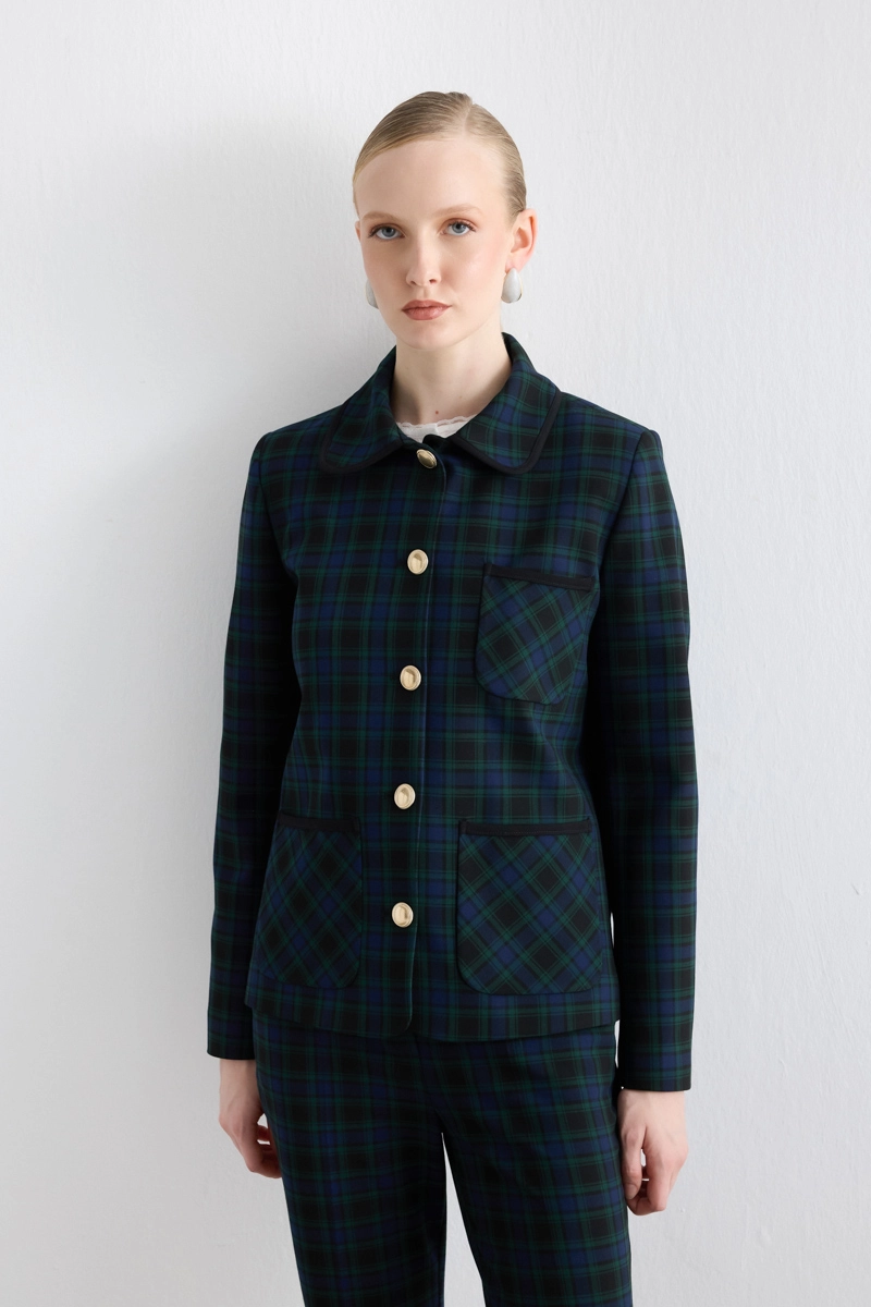 Pocketed Check Jacket Navy