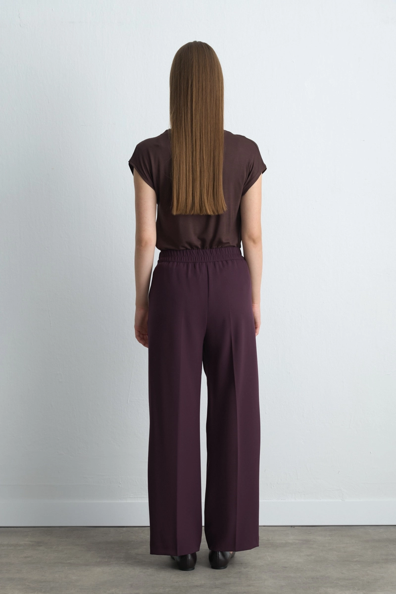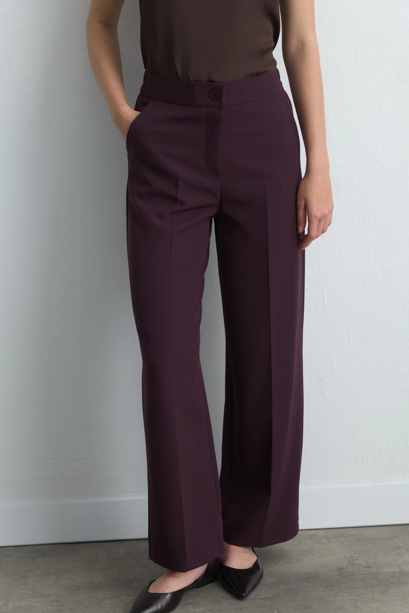 The Plum Tone Creates A Bold And Eye-Catching Style. Palazzo Form Adds Feminine Elegance. The Pocketed Design Provides A Modern And Practical Detail. Can Be Paired With Elegant Blouses For Events Or Basic Pieces For Daily Wear.