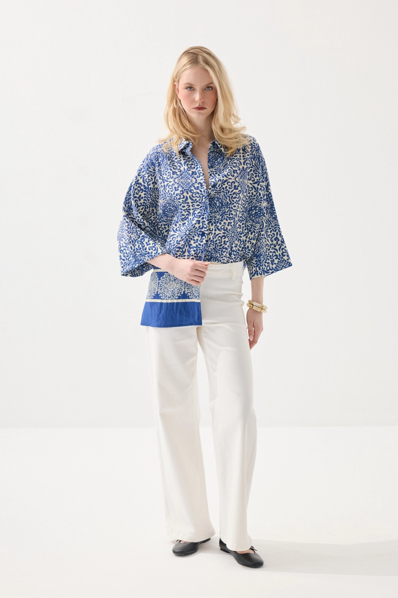 This viscose shirt, featuring a patterned design and relaxed fit, offers a modern and stylish look while ensuring all-day comfort with its lightweight and fluid texture. Its breathable fabric provides a fresh feel, especially in warm weather. It has a wide range of use from daily outfits to office style. Its cut allows freedom of movement, creating a comfortable style. It can be easily paired with different bottoms.